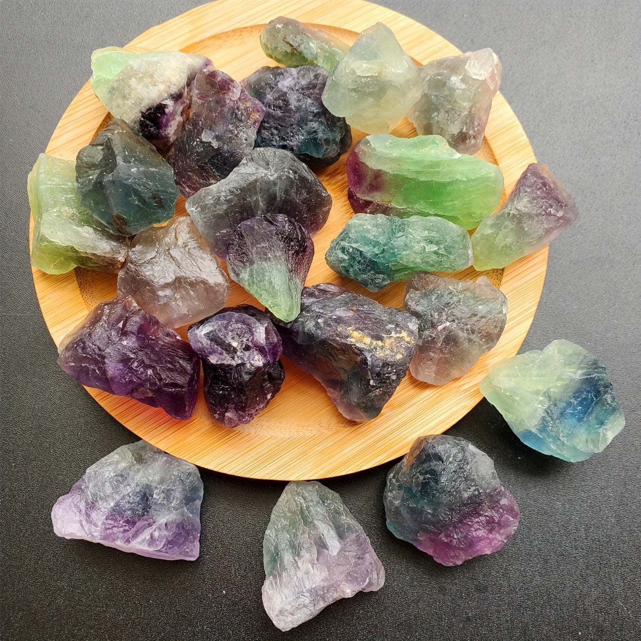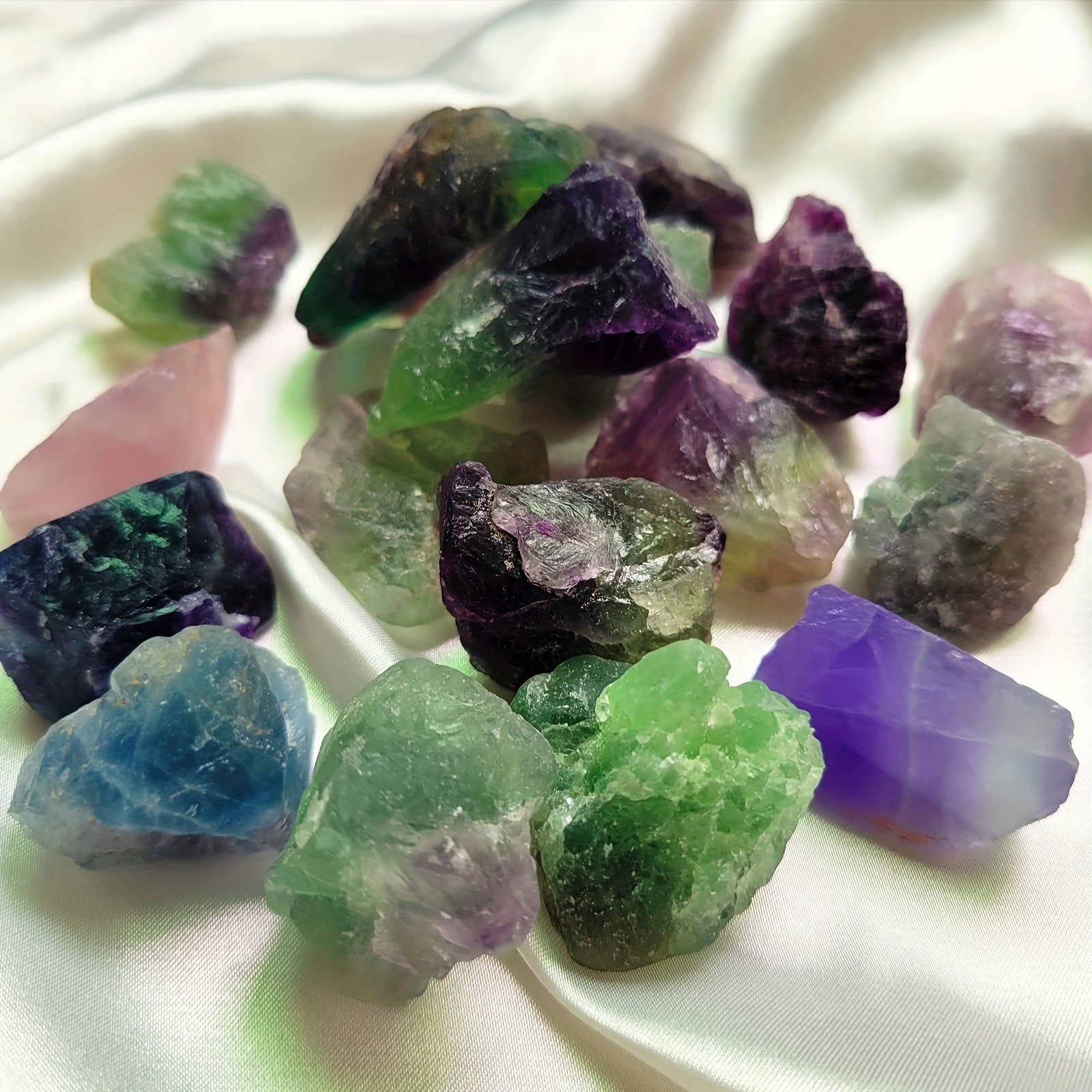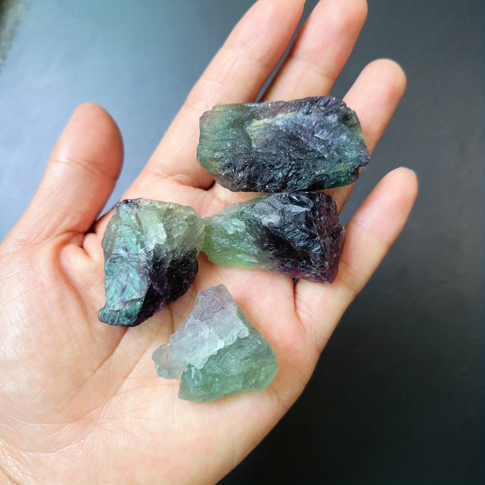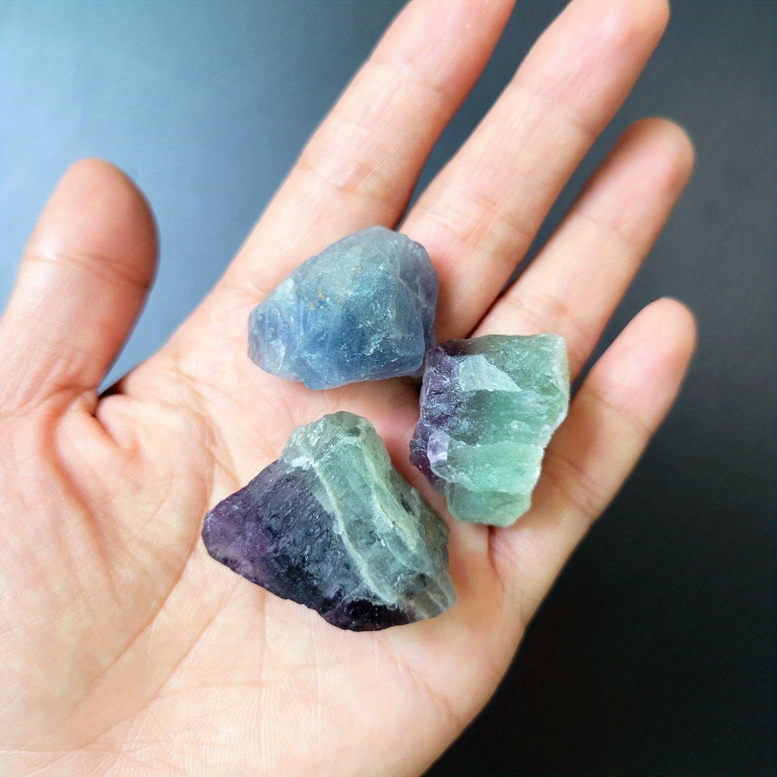 Discover the beauty of Rainbow Fluorite with these raw crystals. Perfect for Wicca, Reiki, jewelry making, or simply as a decorative piece. These stones are ideal for aromatherapy diffusers and can bring calming energy to your space.