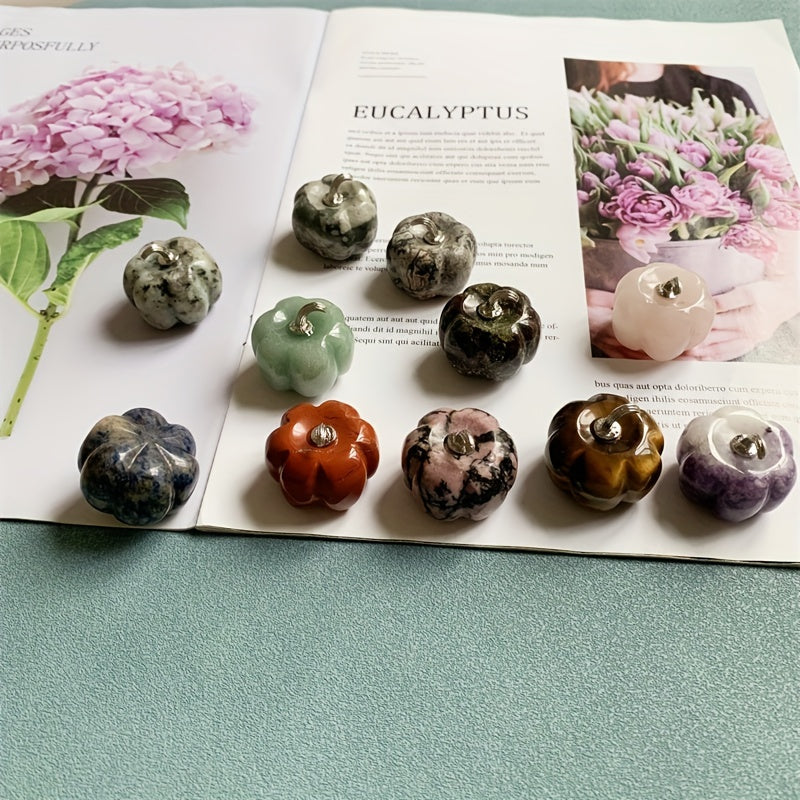 Enhance your home decor with these 29mm crystal pumpkin carvings made of natural rose quartz. Perfect for healing and crafting projects.
