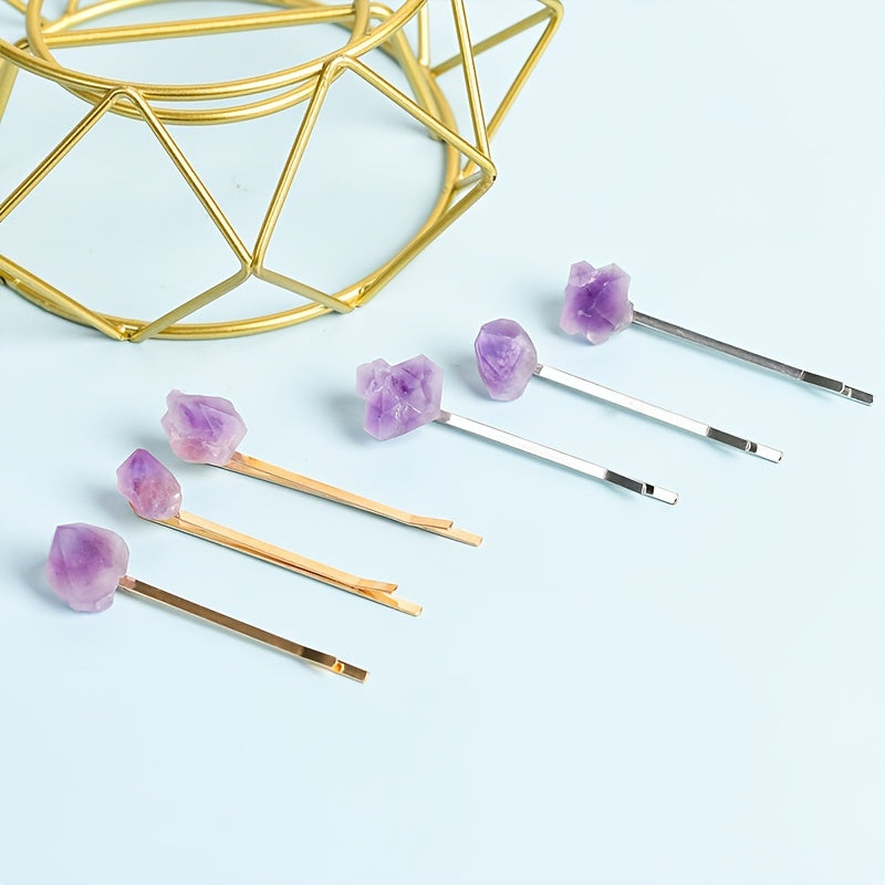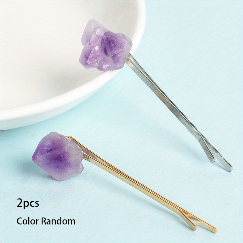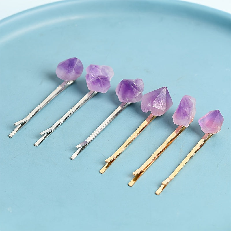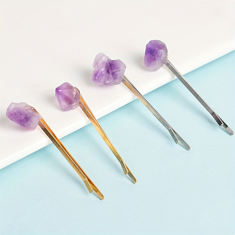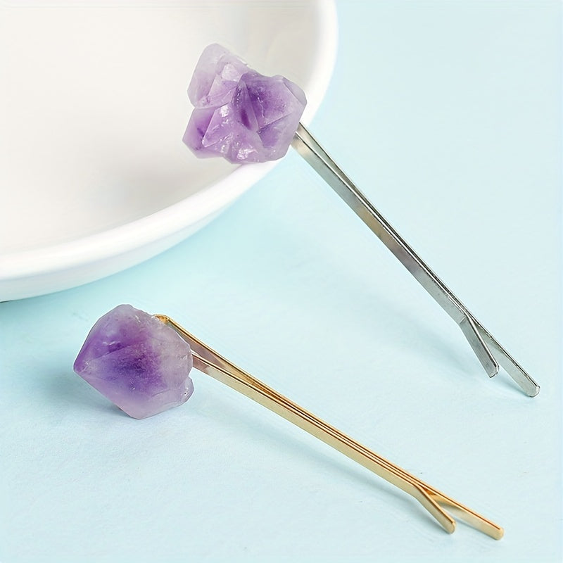 Elevate your hairstyle with this set of 2 crystal amethyst hairpins. Retro design adds a touch of elegance to your look.
