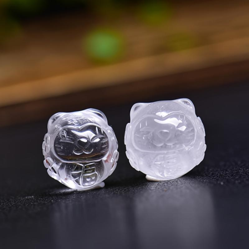 2pcs Clear Quartz Cat Pendant DIY Bracelet Accessory