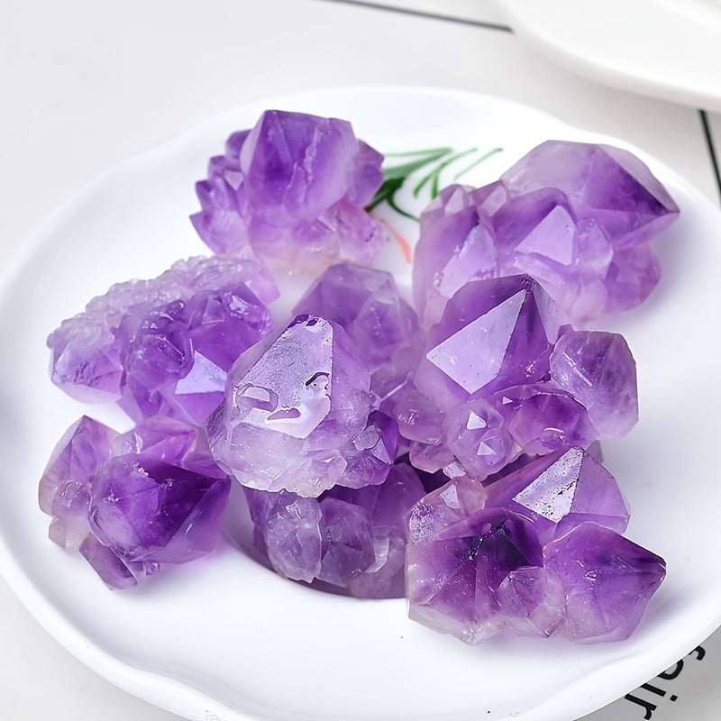 Add a touch of elegance to your space with these raw amethyst stones. The purple color of amethyst is known for its calming and healing properties, making it perfect for aromatherapy or simply as a beautiful home decor piece.