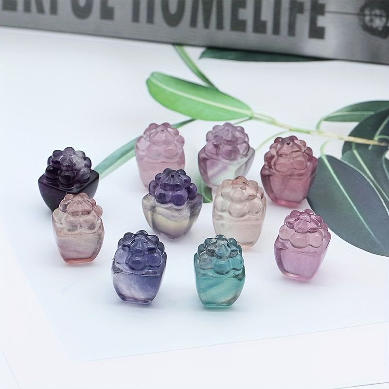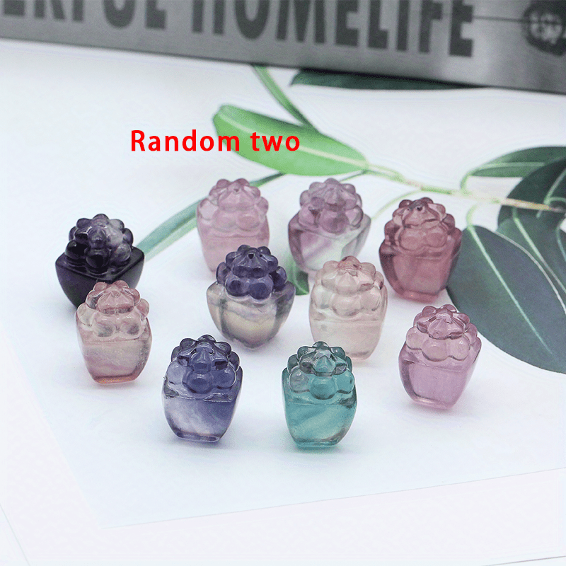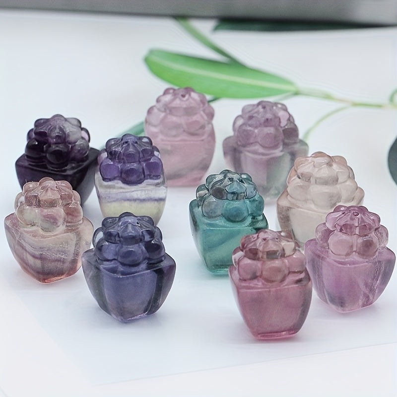 Bring a touch of nature into your space with these lovely Rainbow Fluorite succulent bonsai carving ornaments. They are made of natural stone and can be used as a healing crystal.