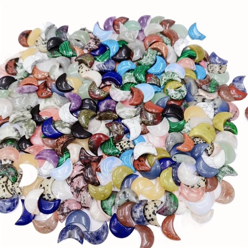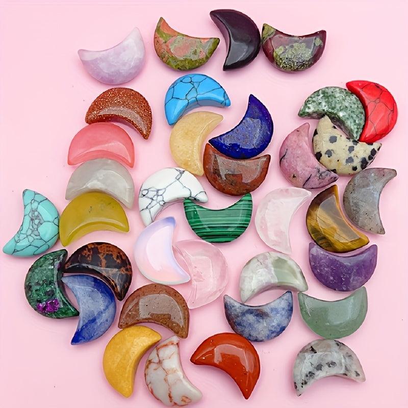 This set includes 30 tiny artificial gemstone moon and star shaped worry stones. Perfect for crafting unique jewelry or as a gift for Valentine's Day.