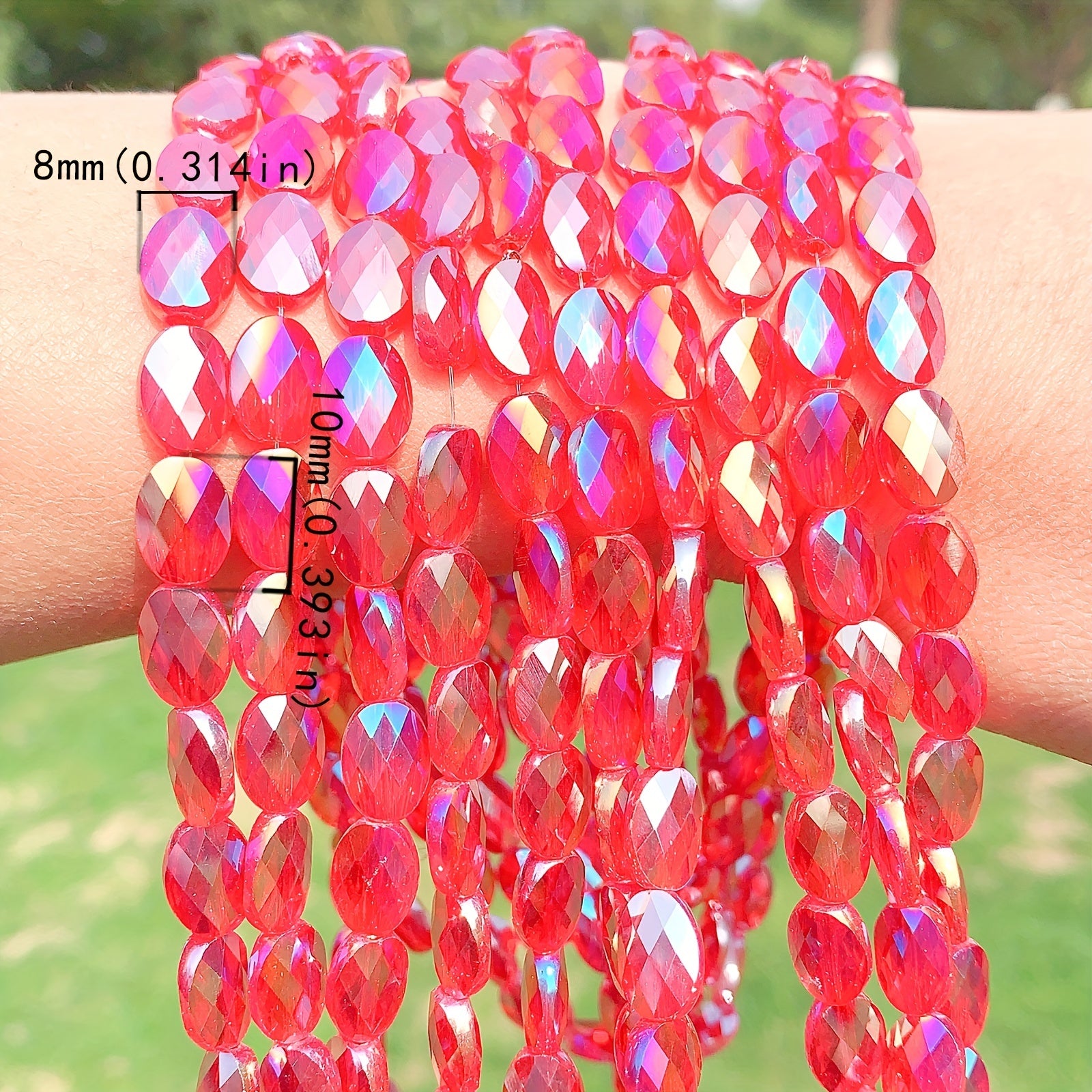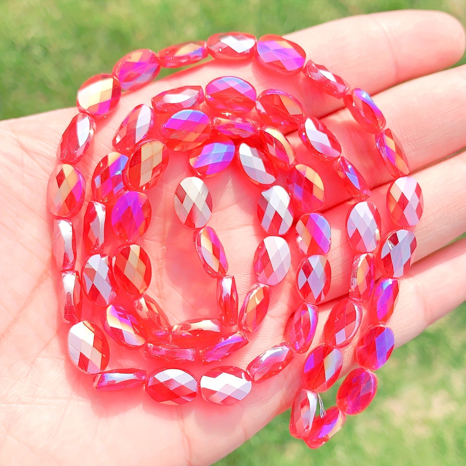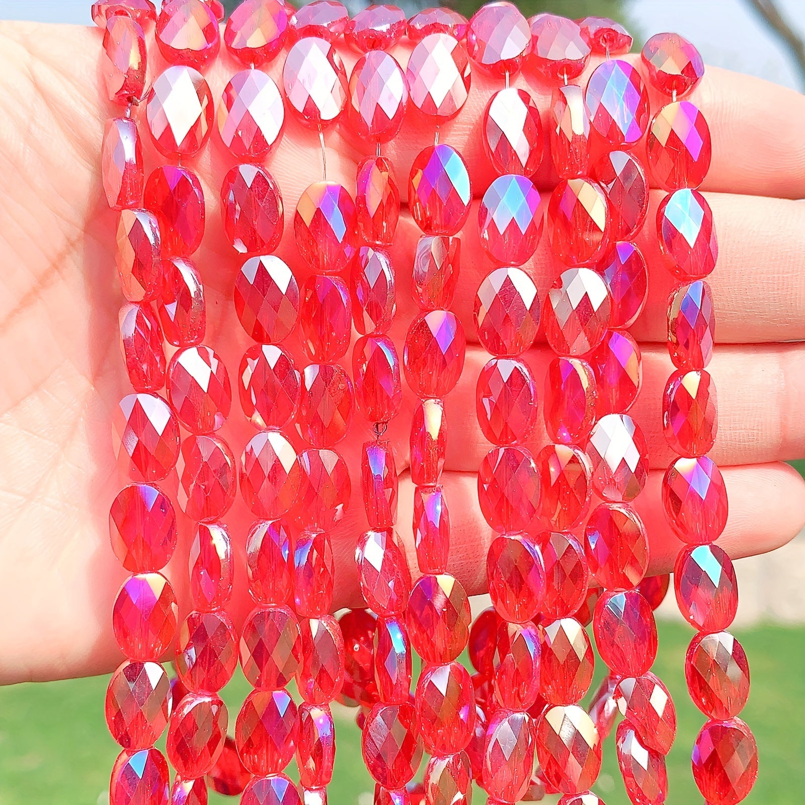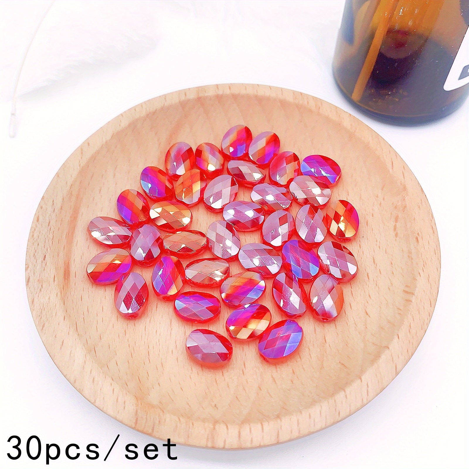 Enhance your DIY bracelet projects with this set of 30 red crystal beads. These oval glass beads with AB plating are perfect for creating unique jewelry accessories.