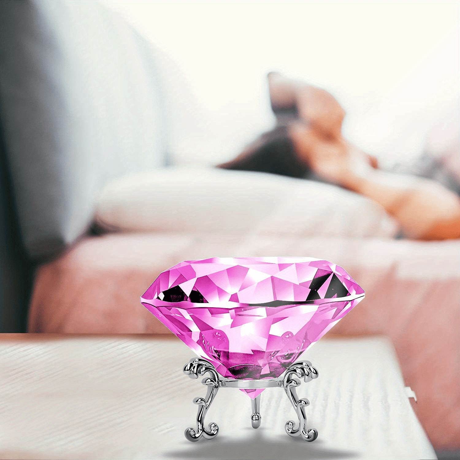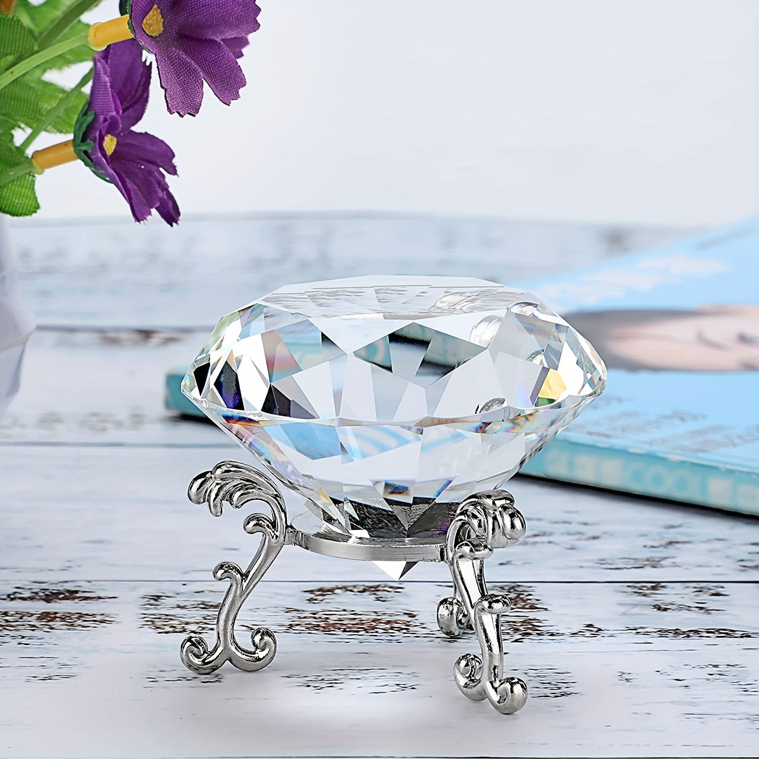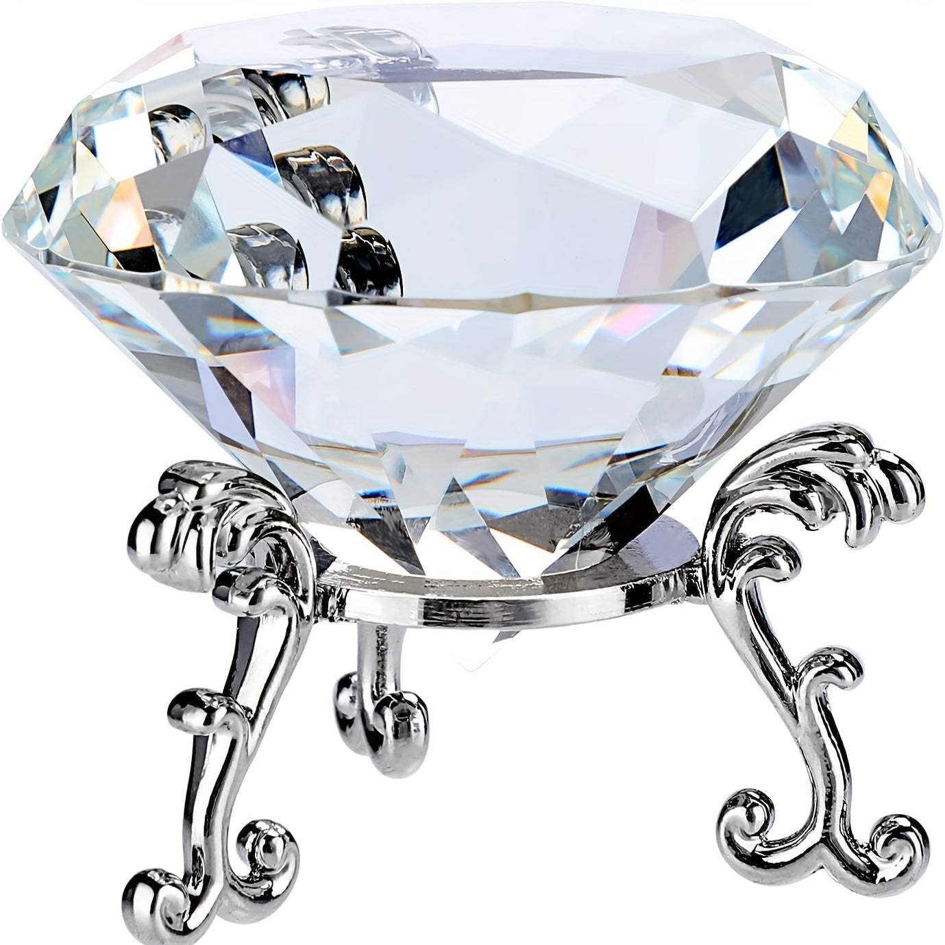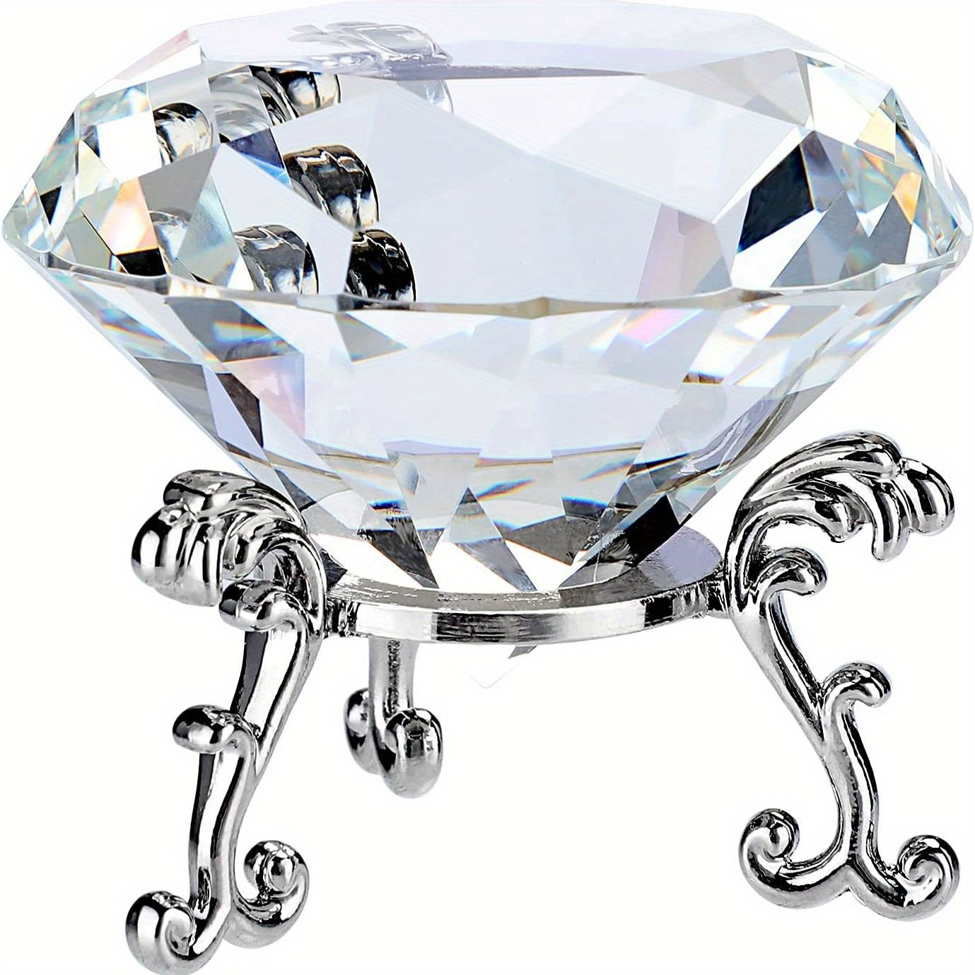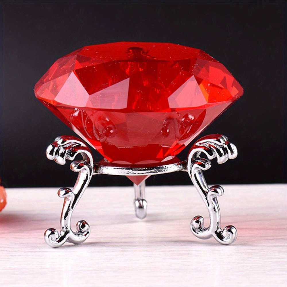 Enhance your home decor with this stunning crystal and jewels stand set. The transparent red, pink, purple, and silver crystals will add a touch of elegance to any room.
