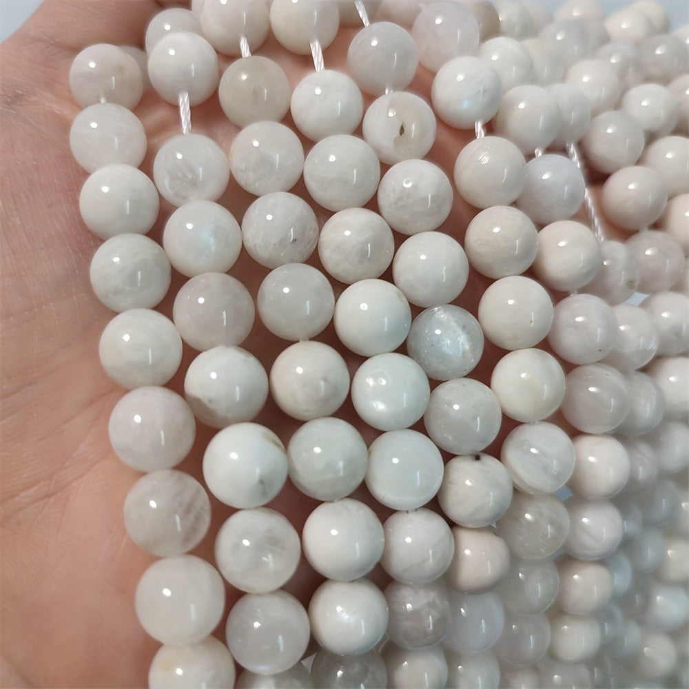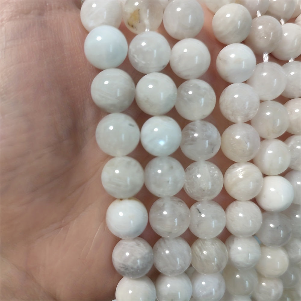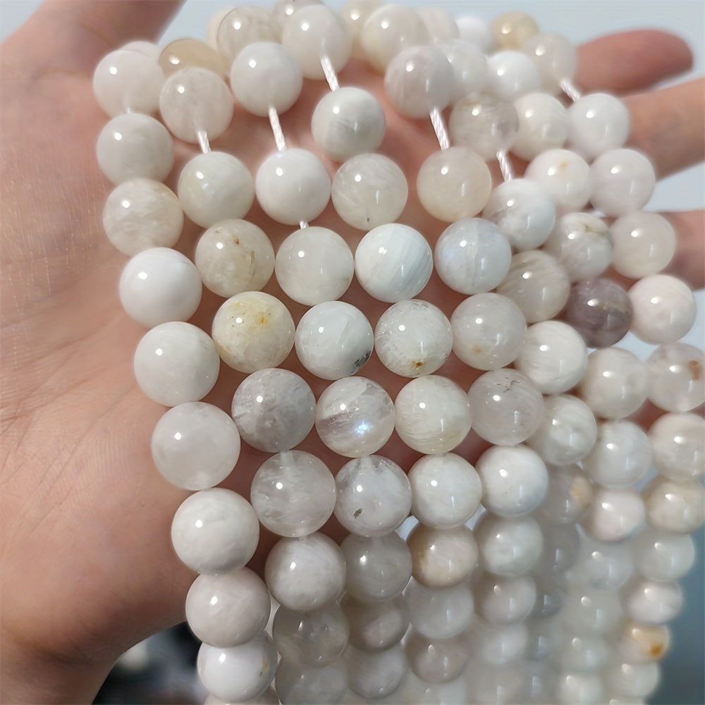 This set includes 38 strip natural moonlight round beads that are perfect for making bracelets, necklaces, and other jewelry pieces. Ideal for DIY projects.