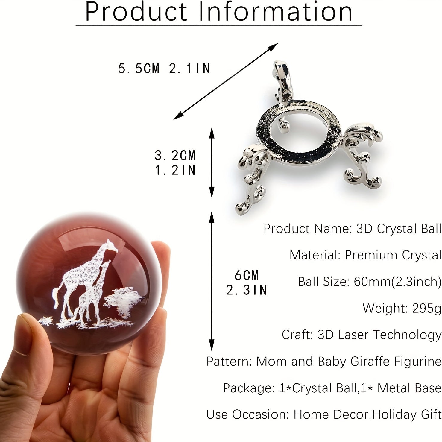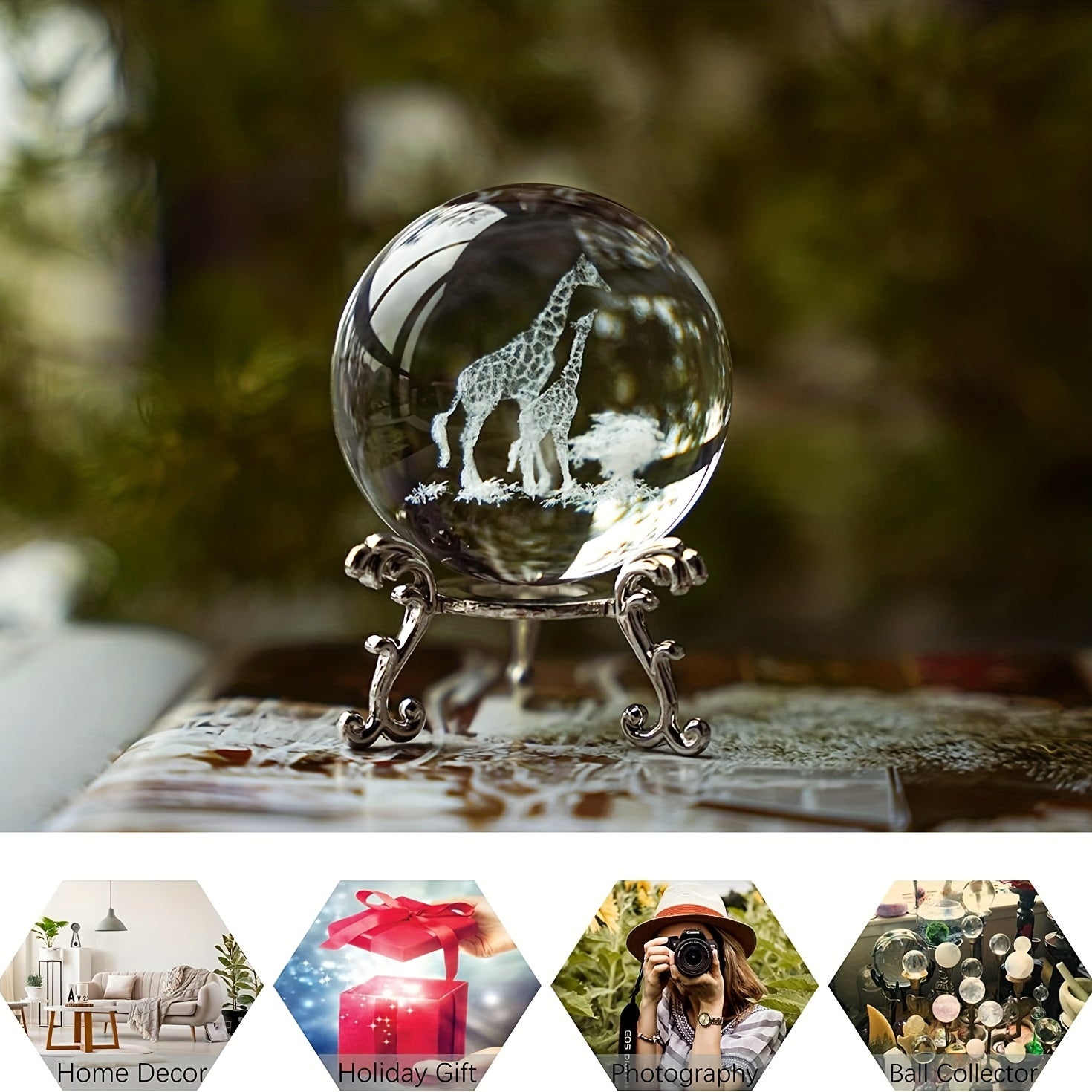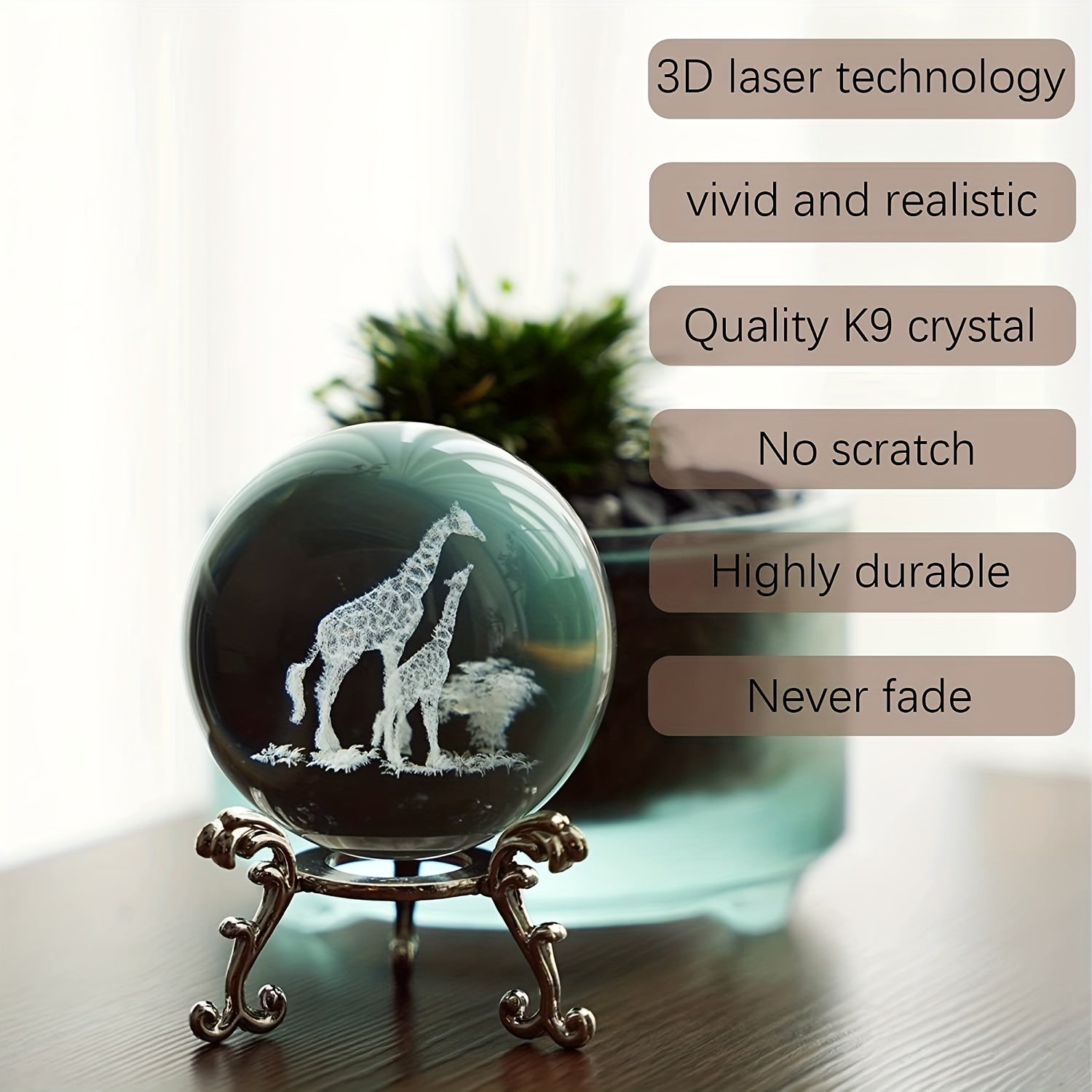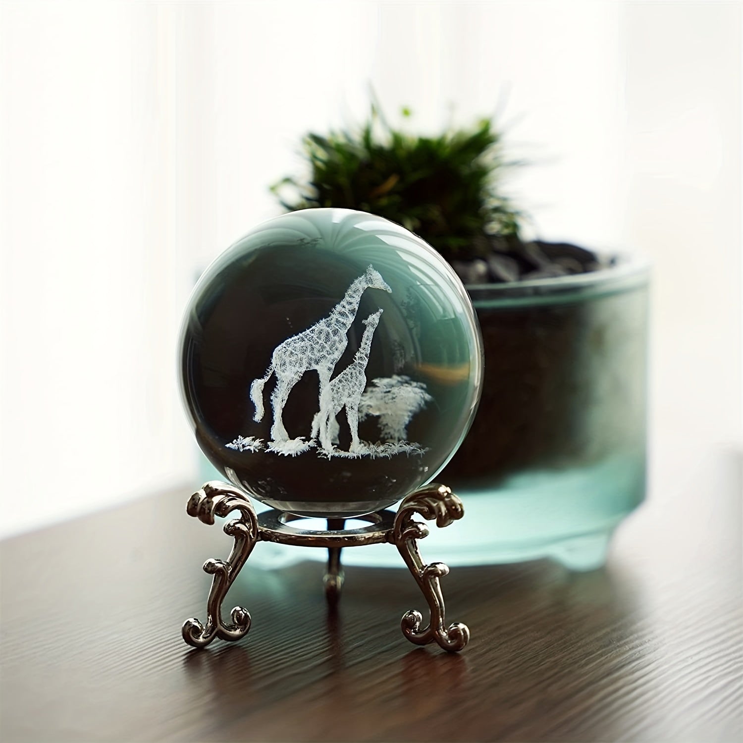 Beautifully crafted 3D laser crystal giraffe statue in a decorative glass ball. Perfect home decor item or gift for any occasion. Measures 60mm (2.4 inches) in diameter.