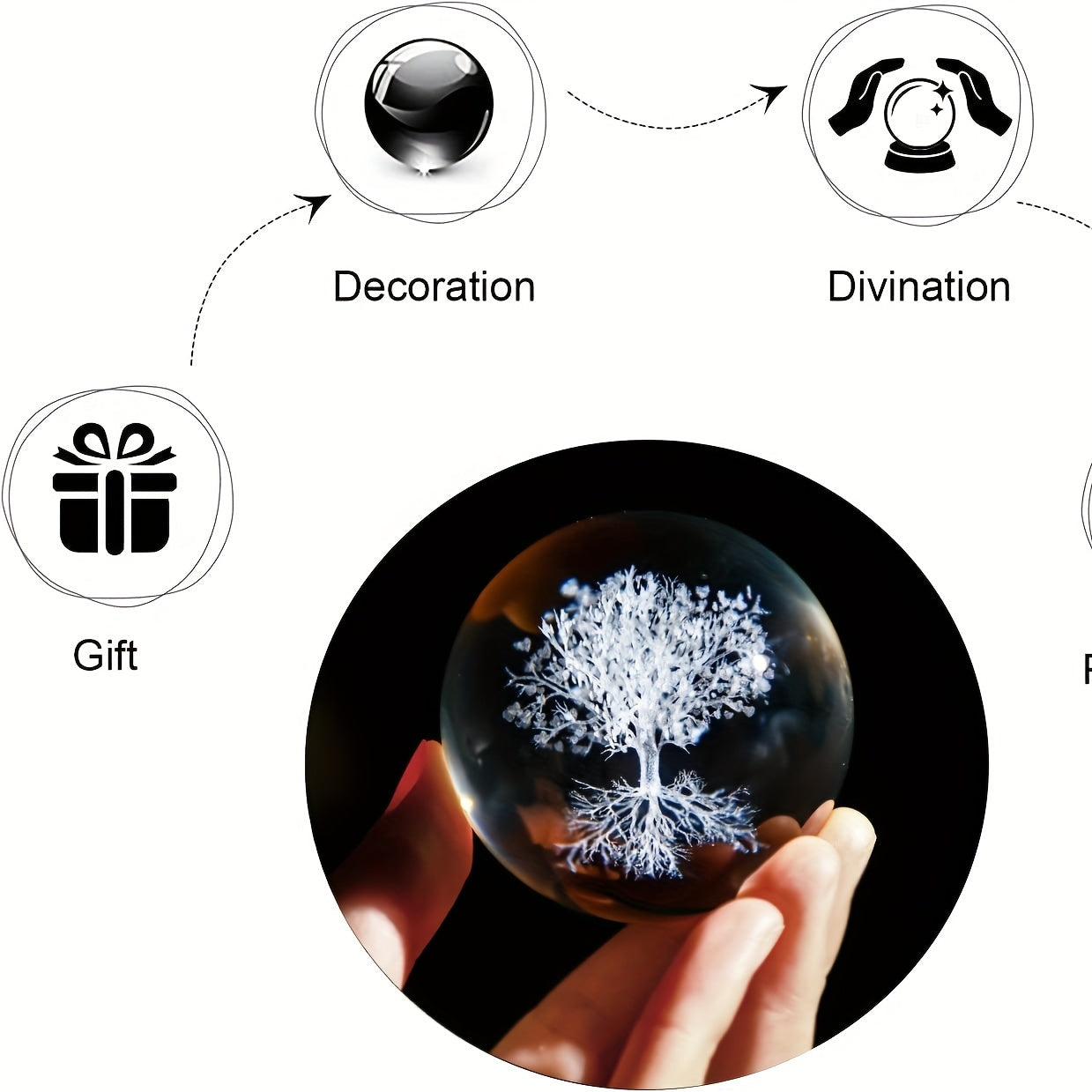 Add a touch of mystique to your space with this 3D Tree Of Life laser crystal ball. Perfect for decoration or as a unique gift.