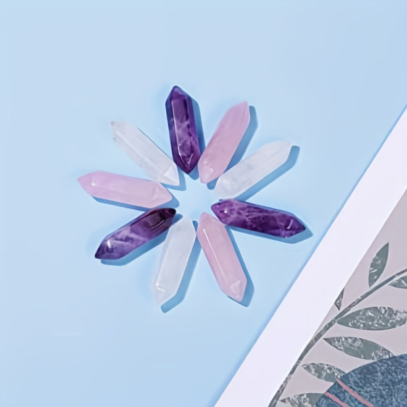 Experience the healing power of natural crystals with this set of Amethyst, Rose Quartz, and Clear Quartz stones. Each stone is hexagonal in shape and brings unique energy and properties to enhance your well-being.