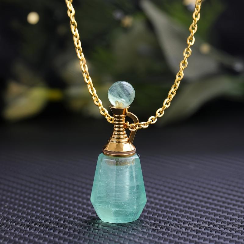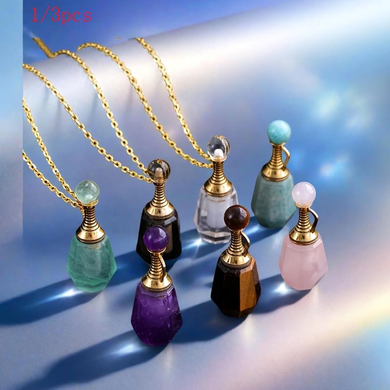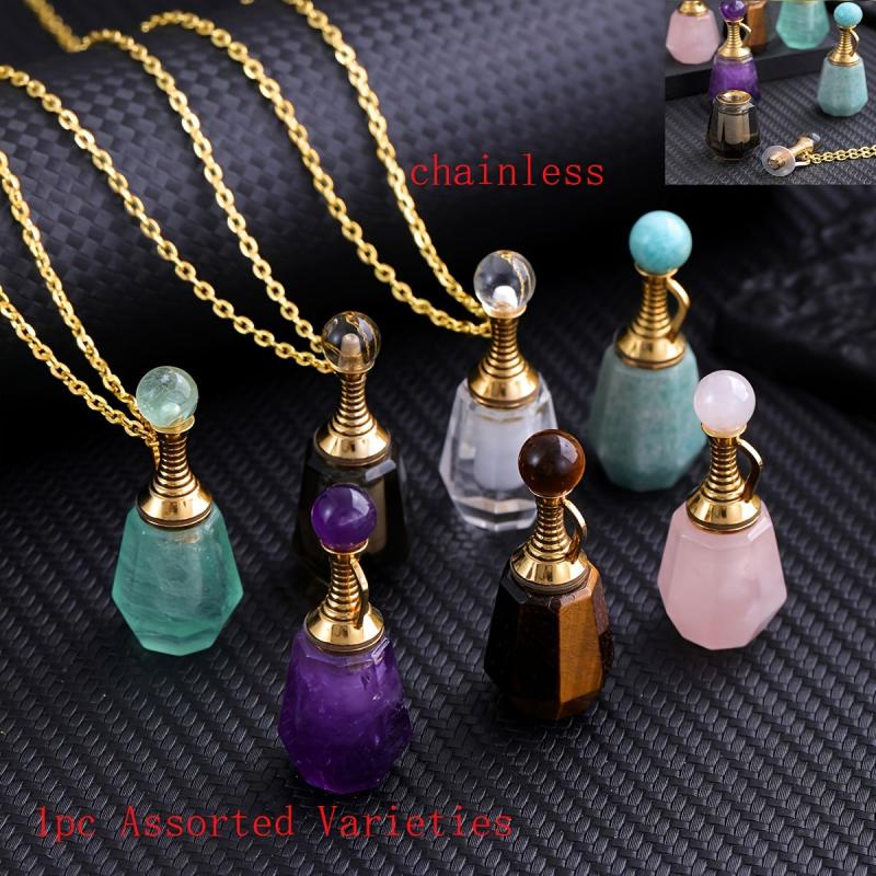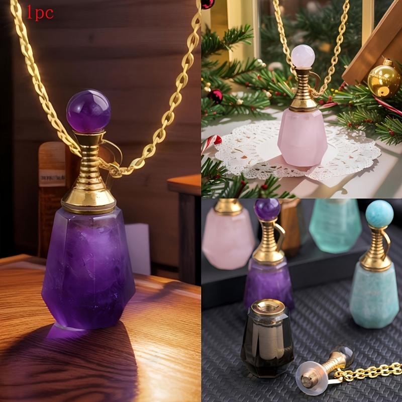 Elevate your DIY jewelry projects with these stunning purple crystal perfume bottles featuring a handcrafted natural stone finish and golden cap.