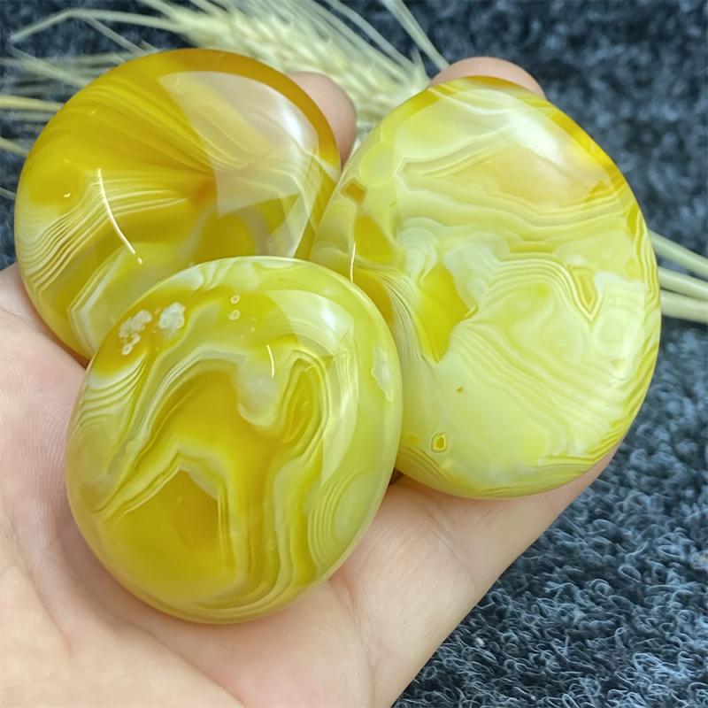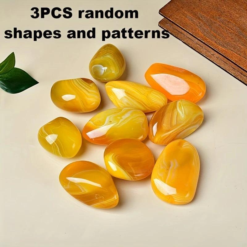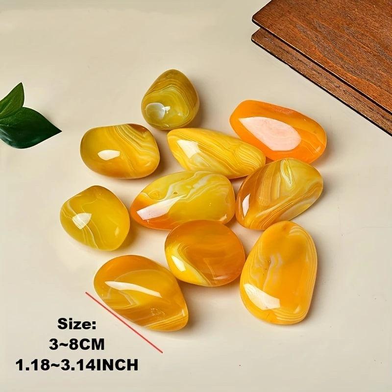These agate quartz stones feature assorted patterns in yellow stripes, perfect for creating unique jewelry and accessories. Each stone is polished raw and high quality.