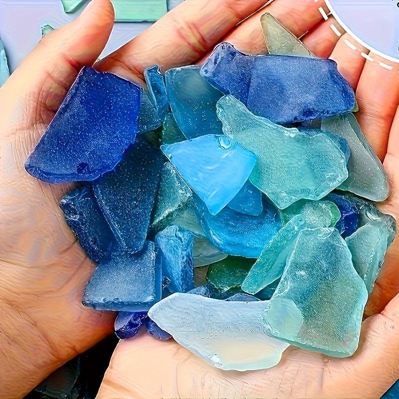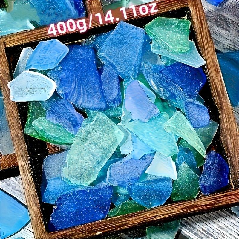 Elevate your crafts with this 400g set of vibrant sea-colored glass shards. Perfect for DIY projects, beach wedding decorations, and home decor.