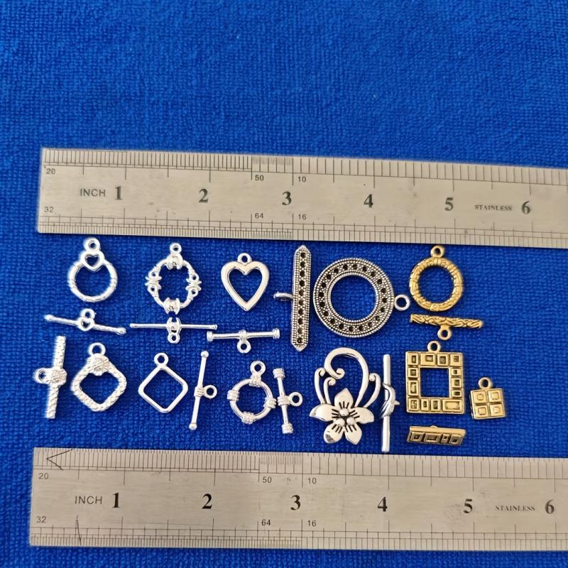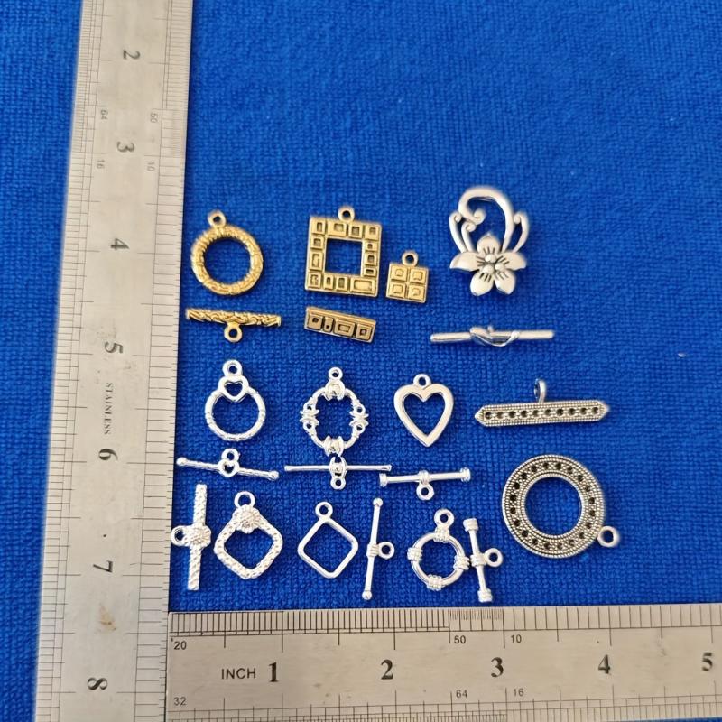 • 42 mixed colors of heart, square, and flower toggle clasps