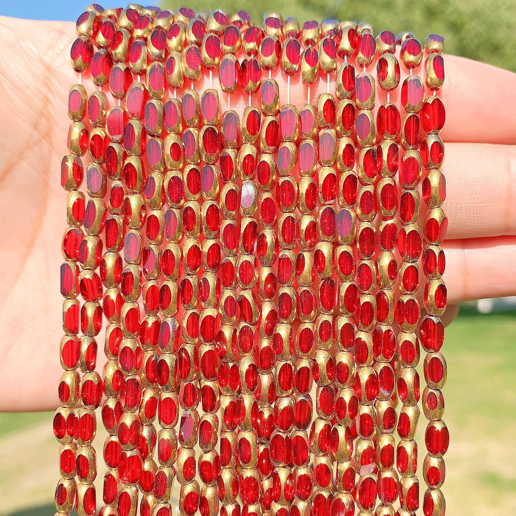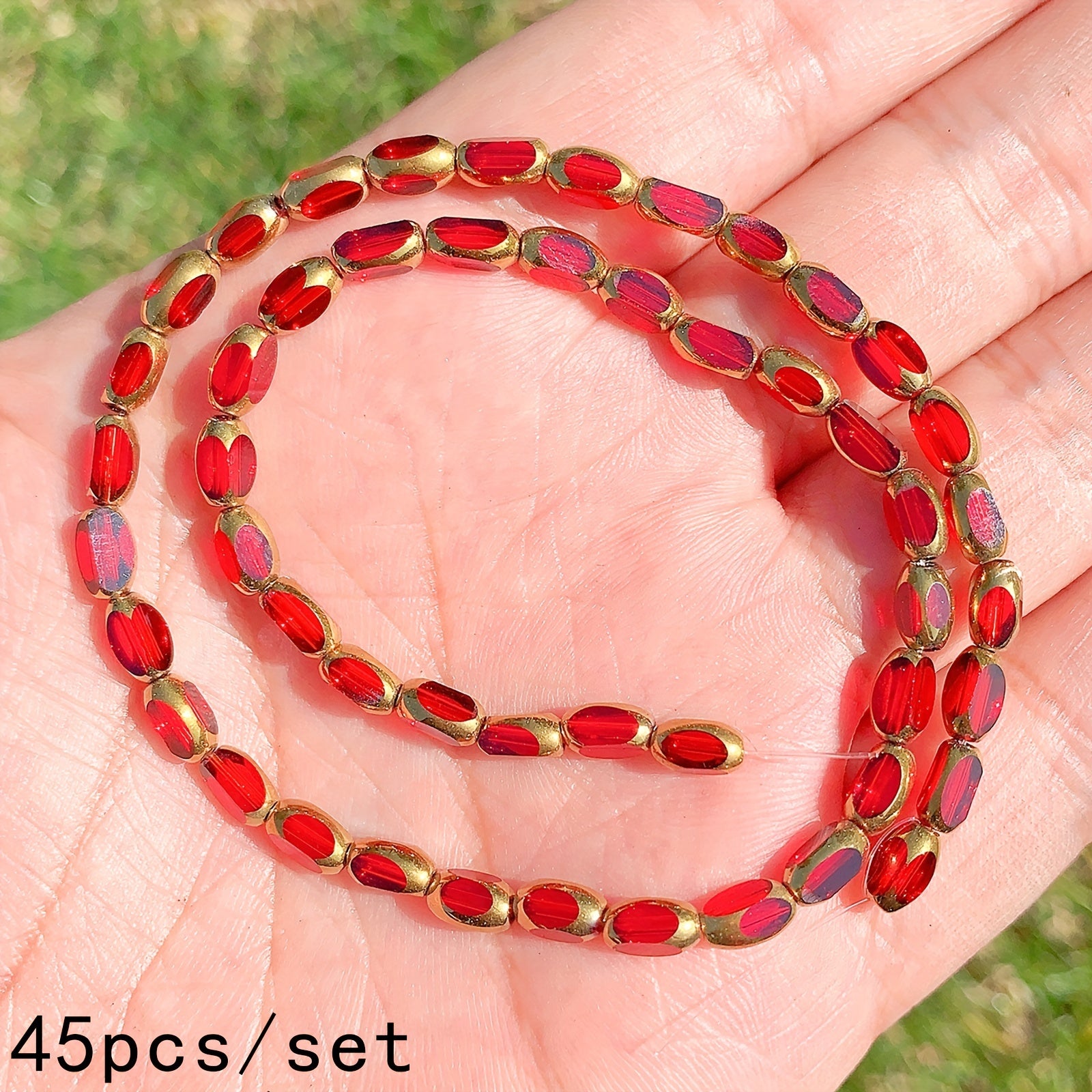 Make your own unique bracelets and necklaces with this set of 45 red crystal beads featuring golden edges. Perfect for DIY jewelry projects.