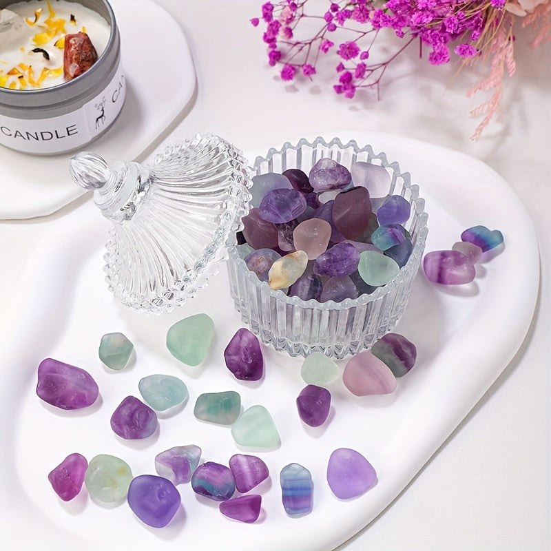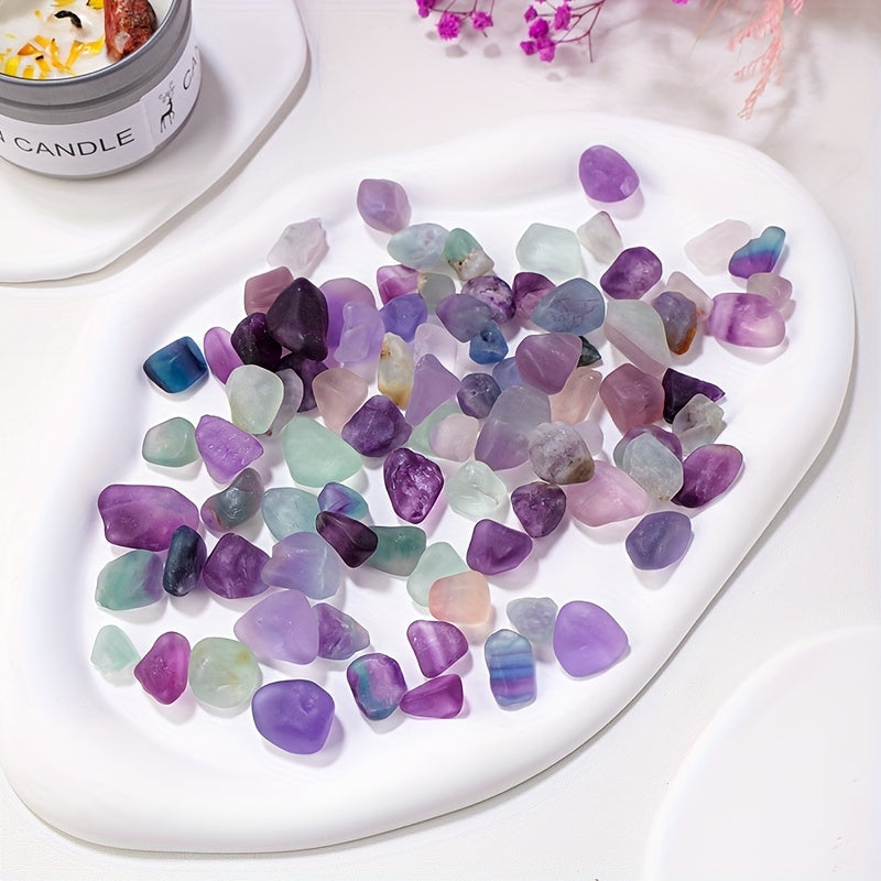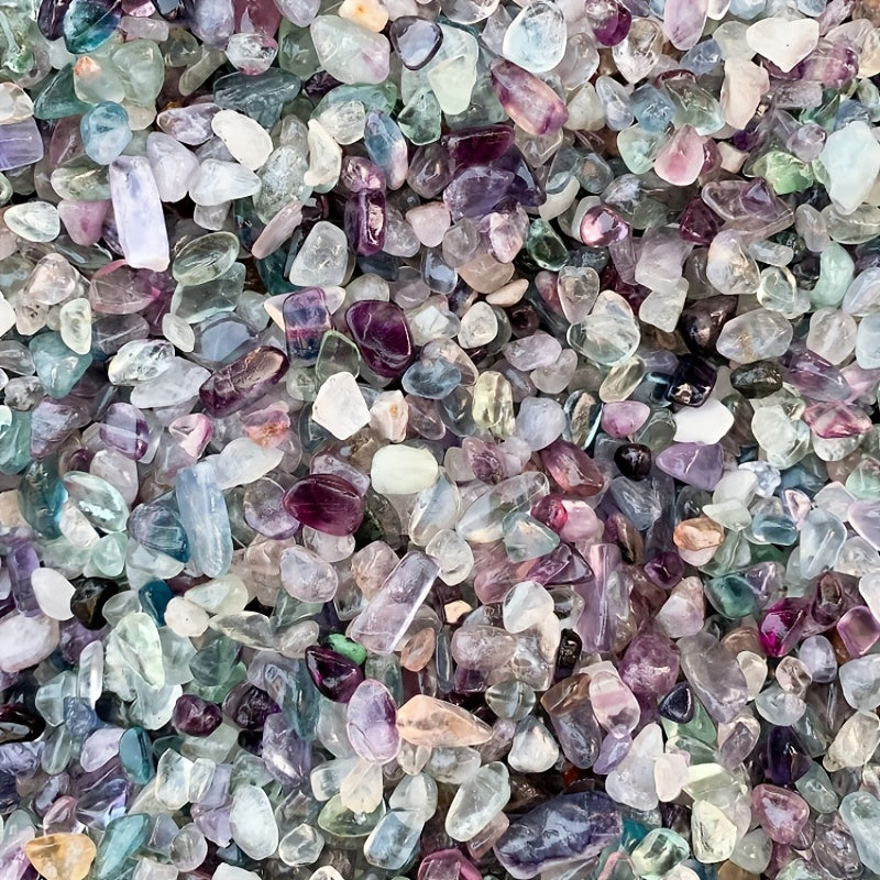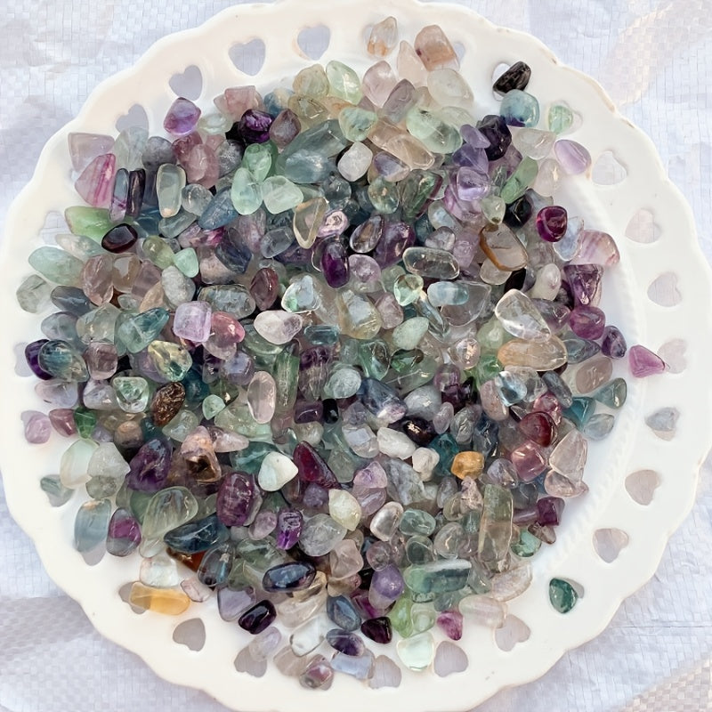 Enhance your plants with these colorful fluorite chips that can be used as a vase filler or decorative rocks. Perfect for succulents and flowerpots.