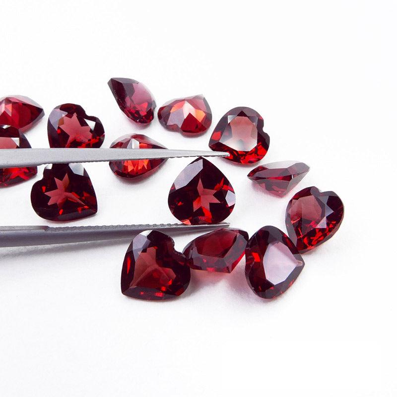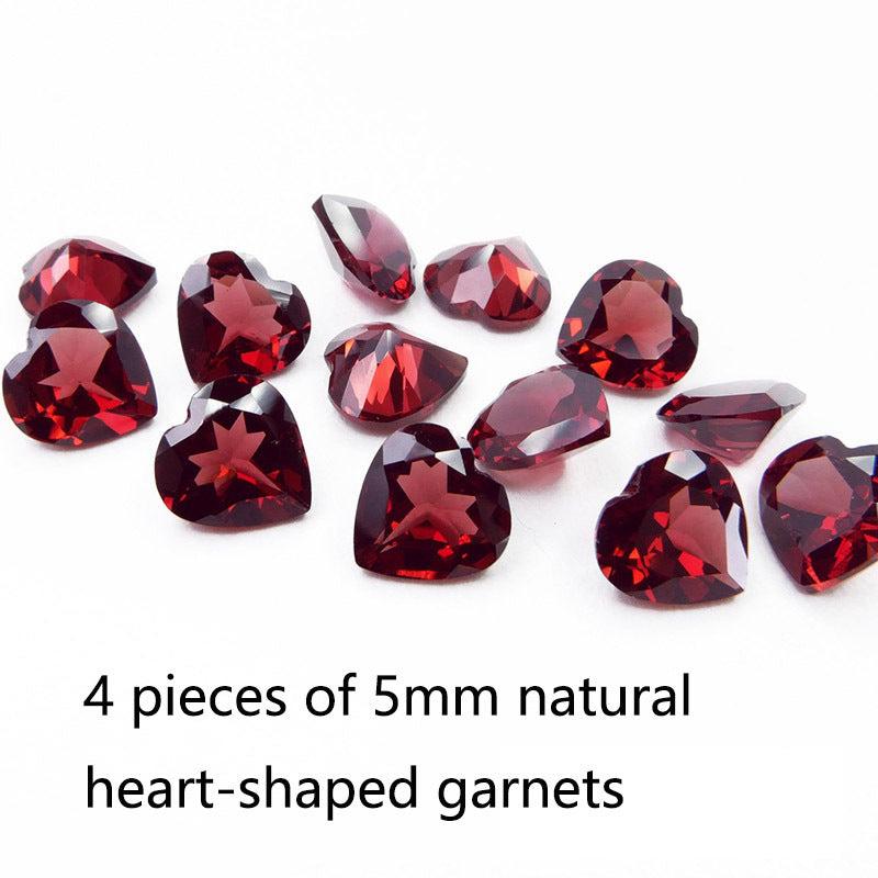 Get these 4 natural heart-shaped garnet gemstones for DIY jewelry making. Perfect for rings, pendants, and earrings. Deep red color, ideal for Christmas gifts.