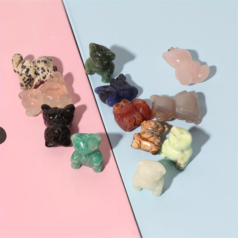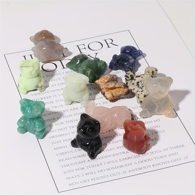 Enhance your accessories with these lovely bear charms made of natural carved crystal. Perfect for making jewelry and gifts. Four color options are available and will be sent randomly.