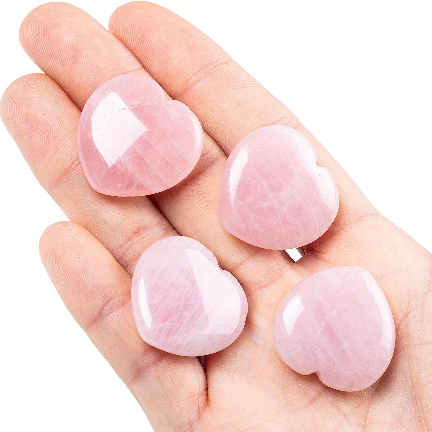 4PCS Rose Quartz Heart Shape Pink Crystals Healing Stone