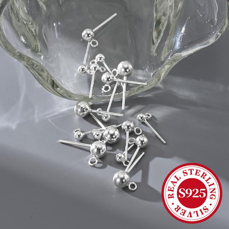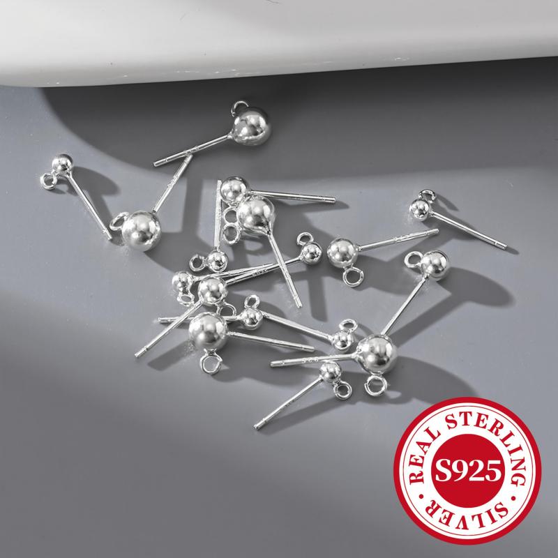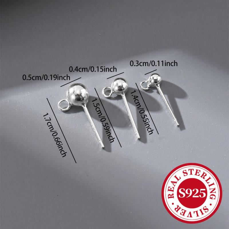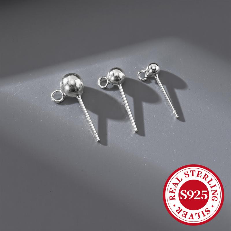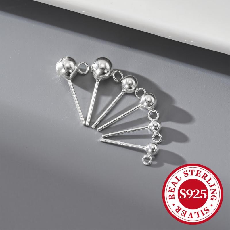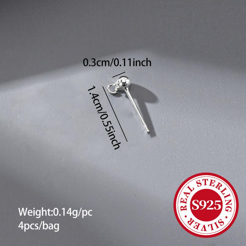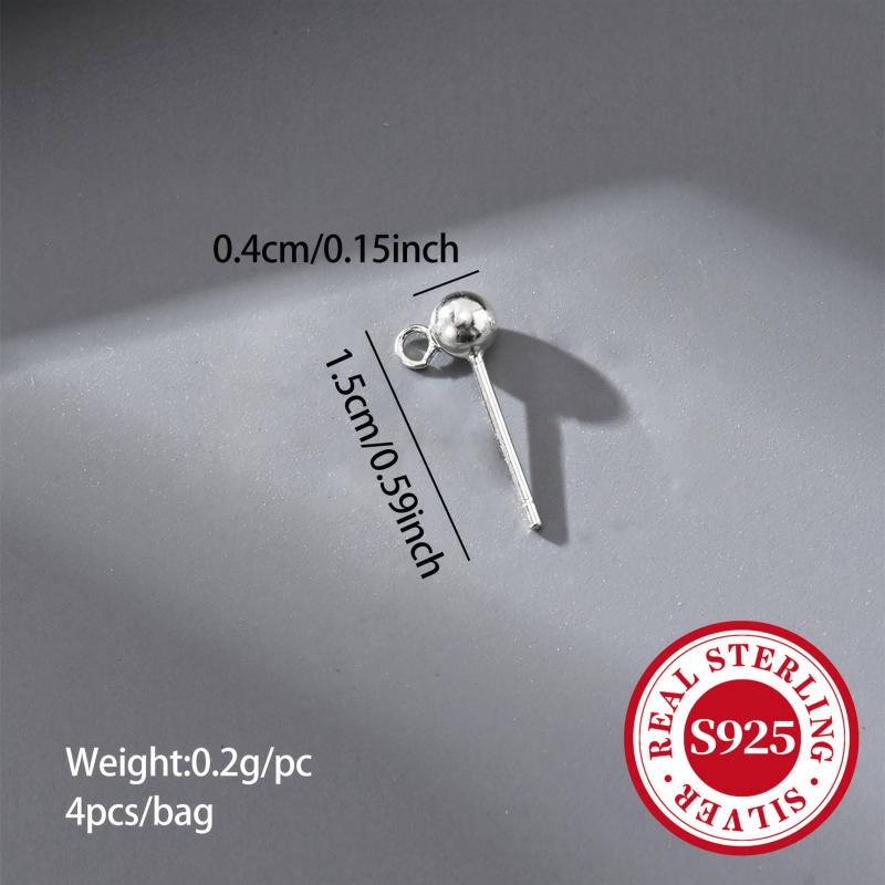 Create custom earrings with this pack of 4 S925 pure silvery earring studs that feature open rings for easy customization. Perfect for 3mm, 4mm, and 5mm jewelry making projects.