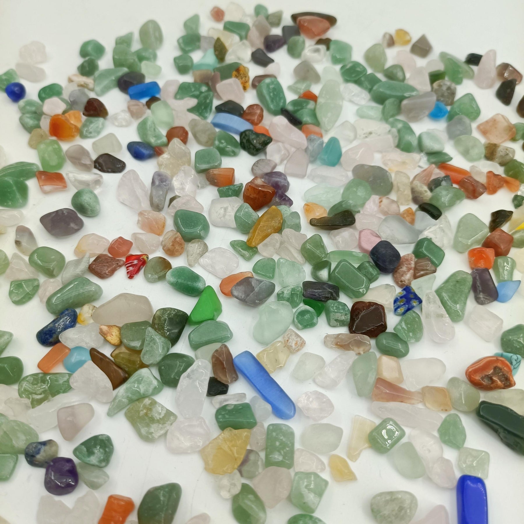 These crystal chips are versatile and can be used for various purposes such as filling containers for houseplants, fishing, jewelry making, wishing bottle filler, garden decoration, and fountain decor.