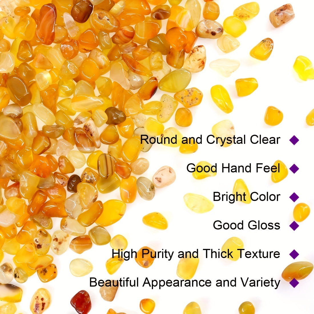 Enhance the aesthetics of your plants, succulents, and flowerpots with these healing crystals. The vibrant yellow agate chips are perfect as vase fillers, decorative rocks, and terrarium accents.