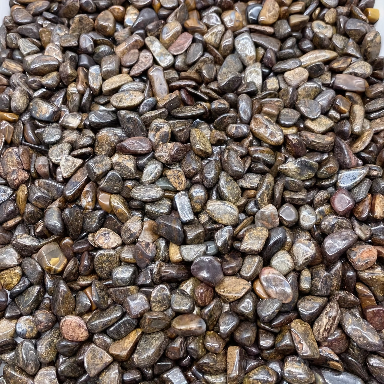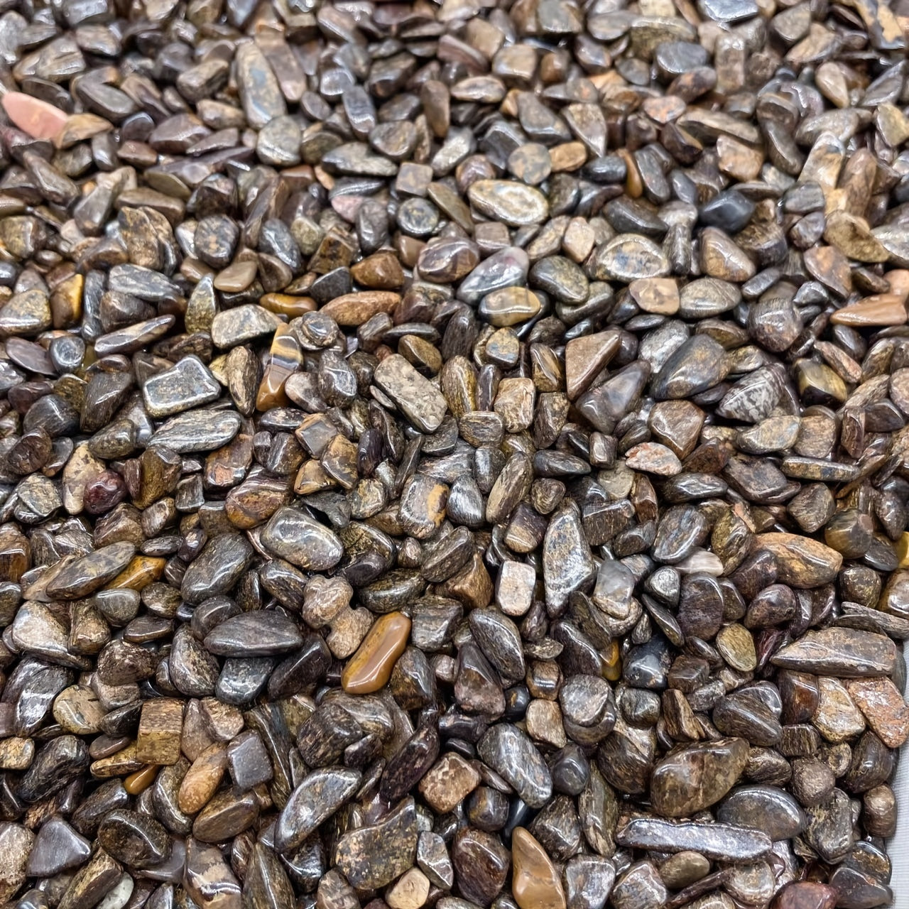Enhance your home decor with this 50g bag of Natural Bronzite Chips, irregularly shaped gemstones that are perfect for healing and balancing your chakras.
