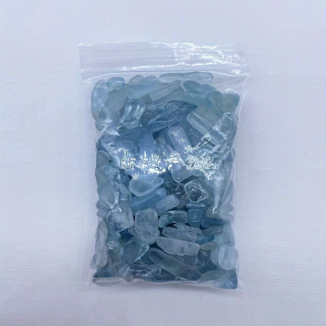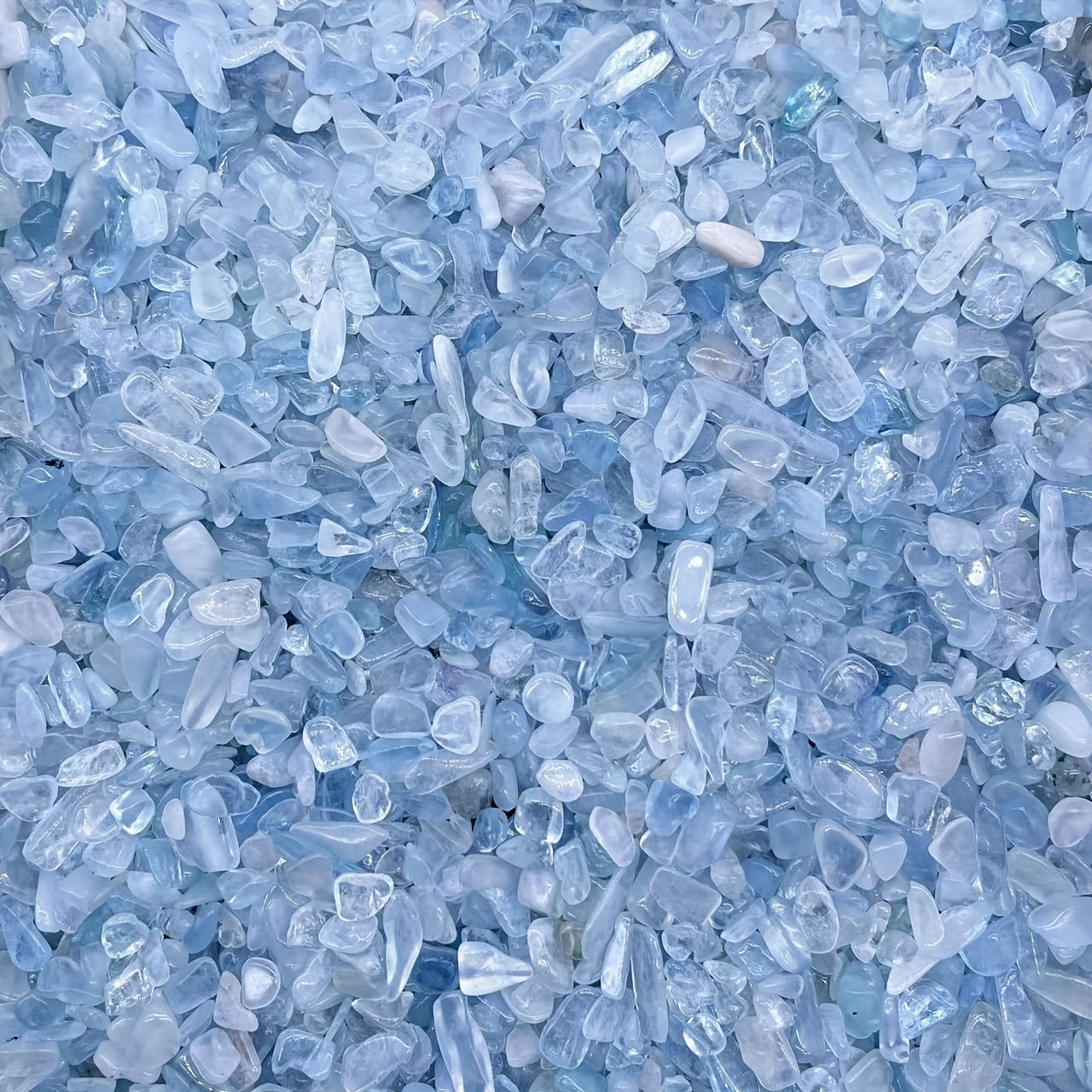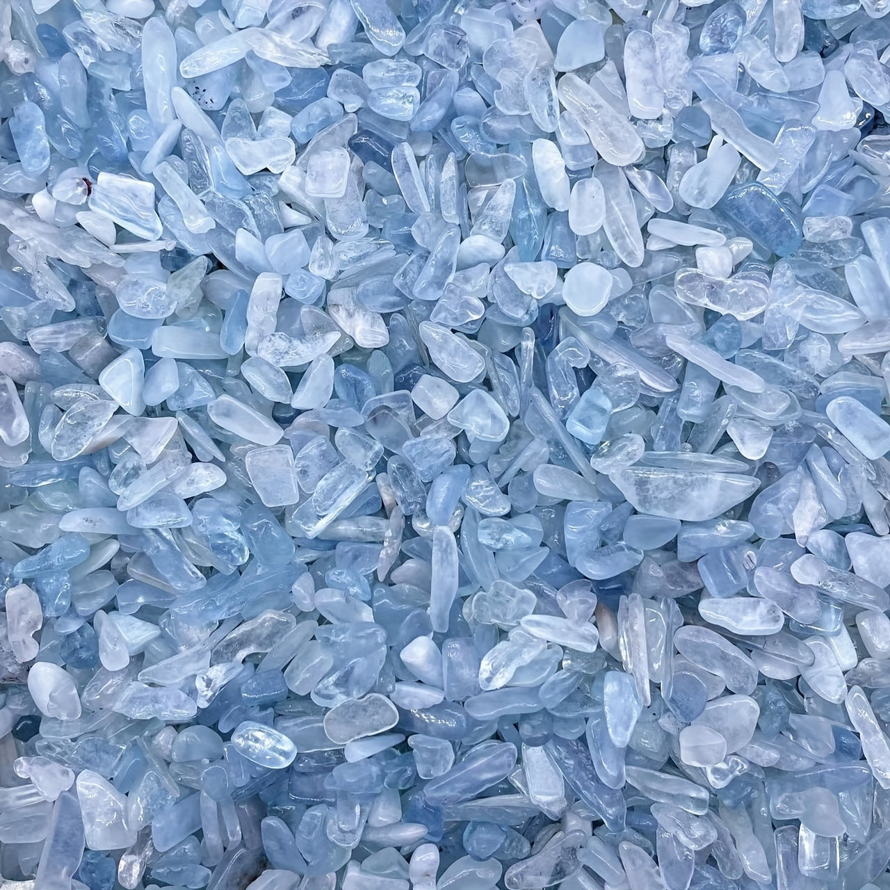 Enhance your energy with these Aquamarine Shards Crushed Stones. These irregular shaped gemstones carry healing properties and align with chakra energies.