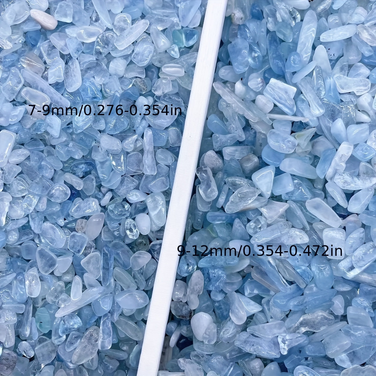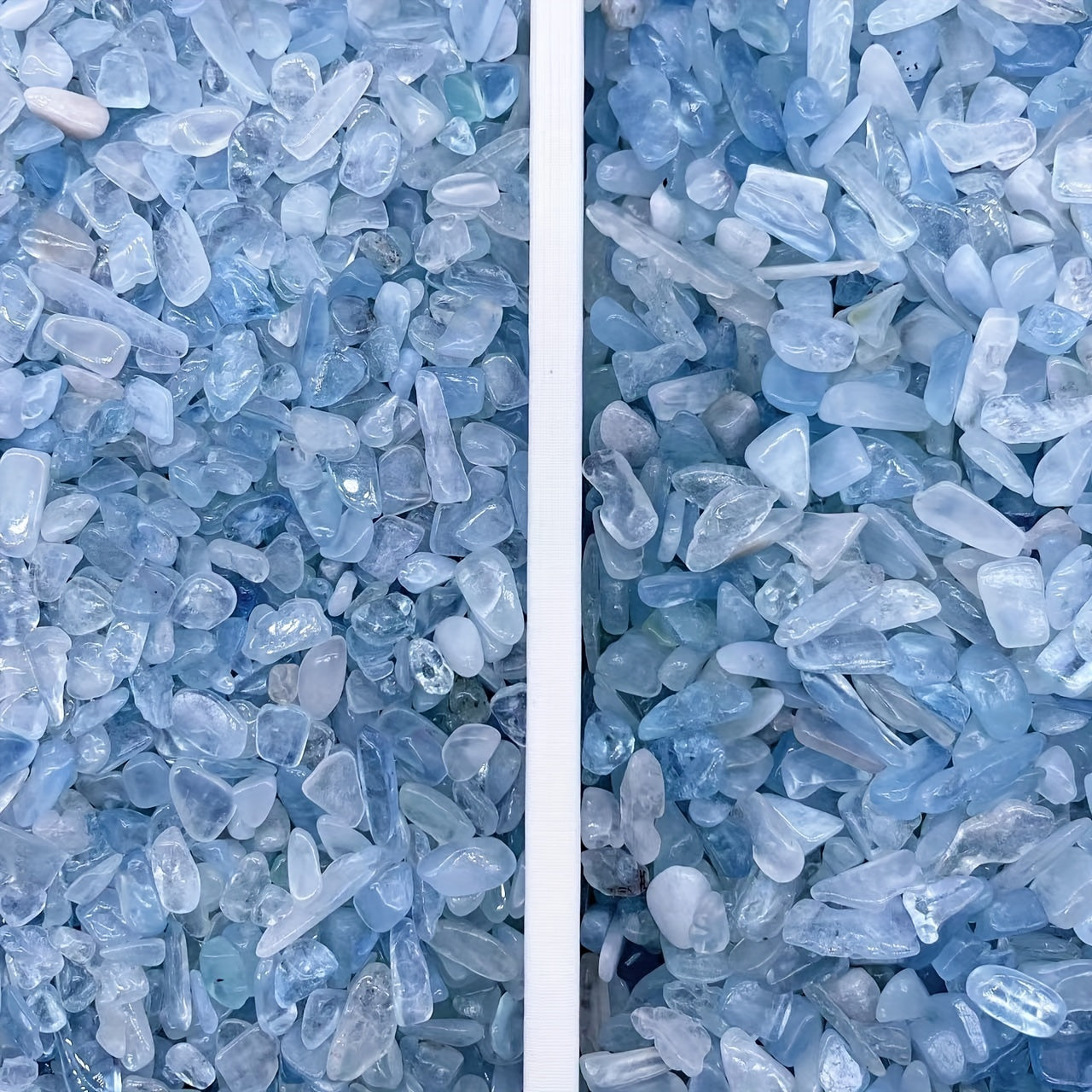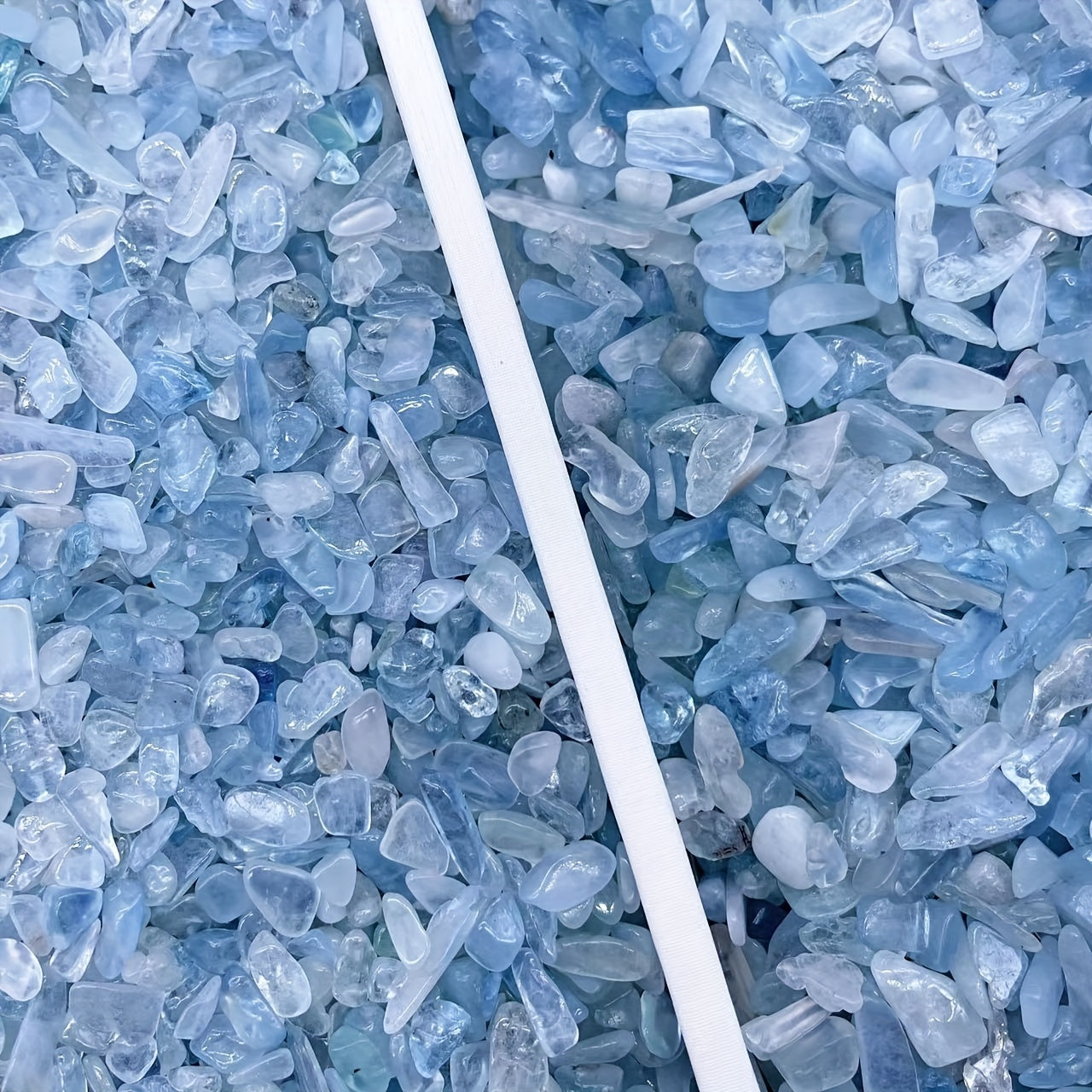 Enhance your energy with these Aquamarine Shards Crushed Stones. These irregular shaped gemstones carry healing properties and align with chakra energies.