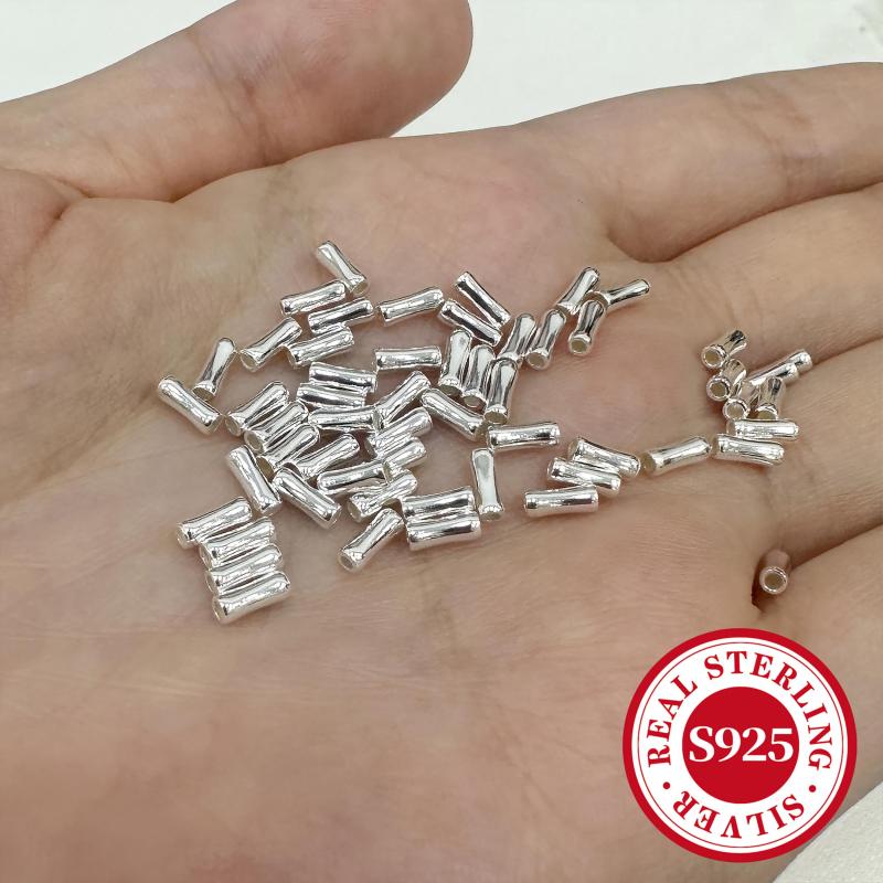 Enhance your jewelry-making projects with these 50pcs S925 pure silver straight tube beads. The glossy bone beads are perfect for woven jewelry and DIY materials.