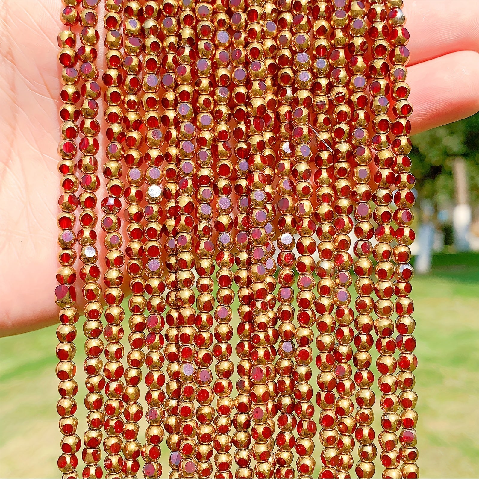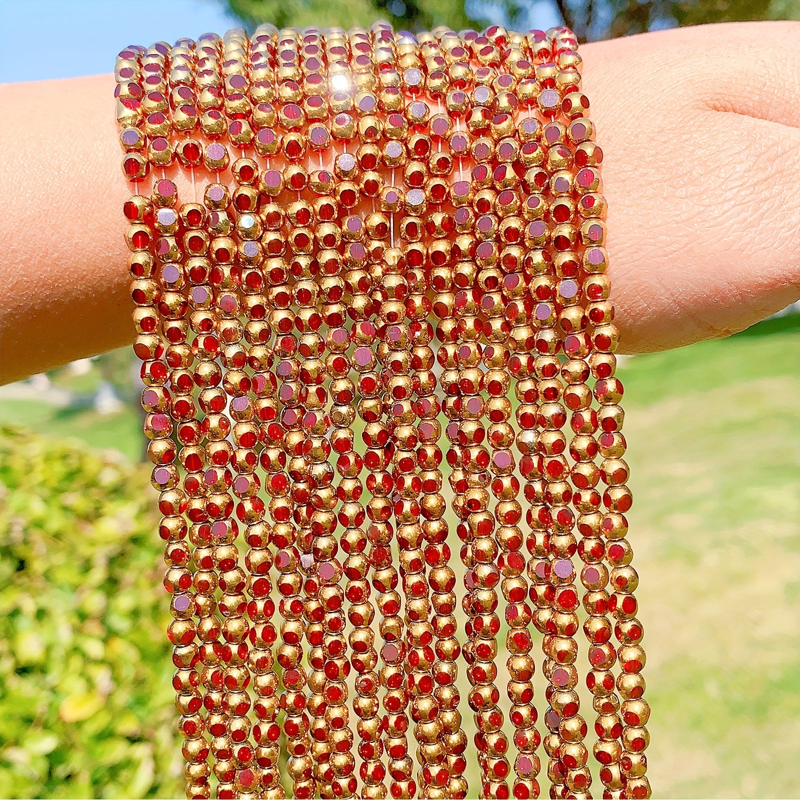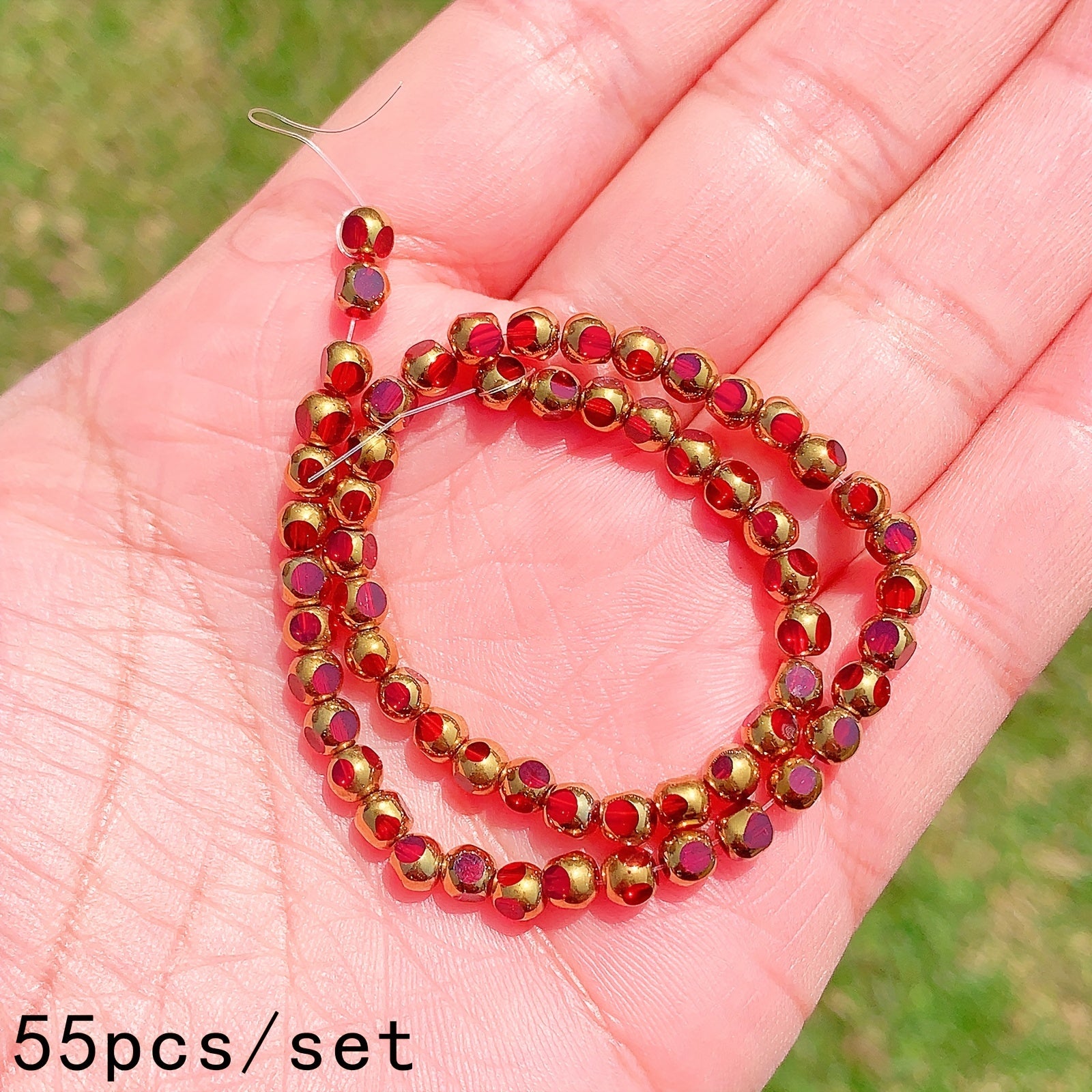 Enhance your DIY bracelet designs with this set of 55pcs golden faceted crystal beads and red glass spacer beads. Perfect for creating unique and stylish jewelry accessories.