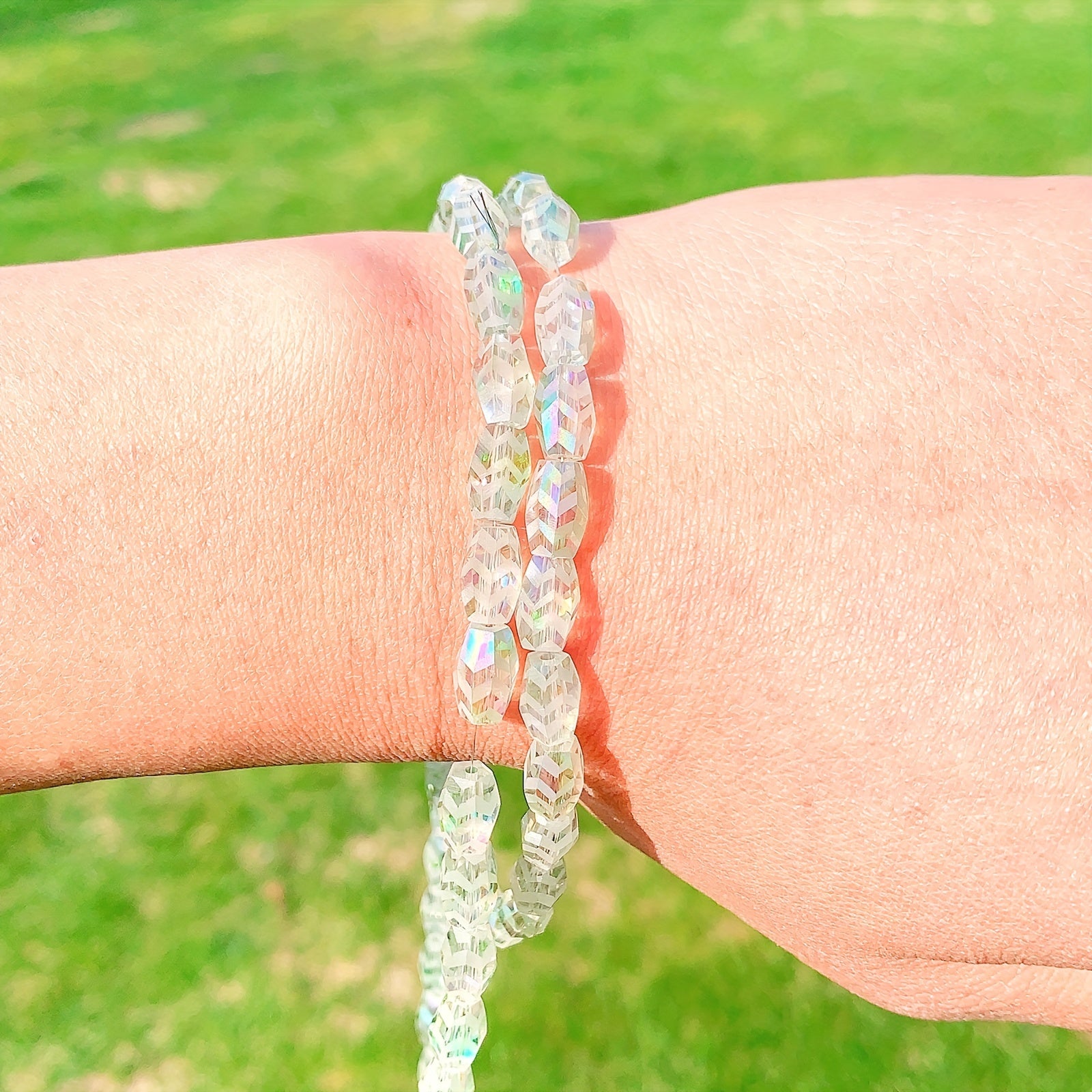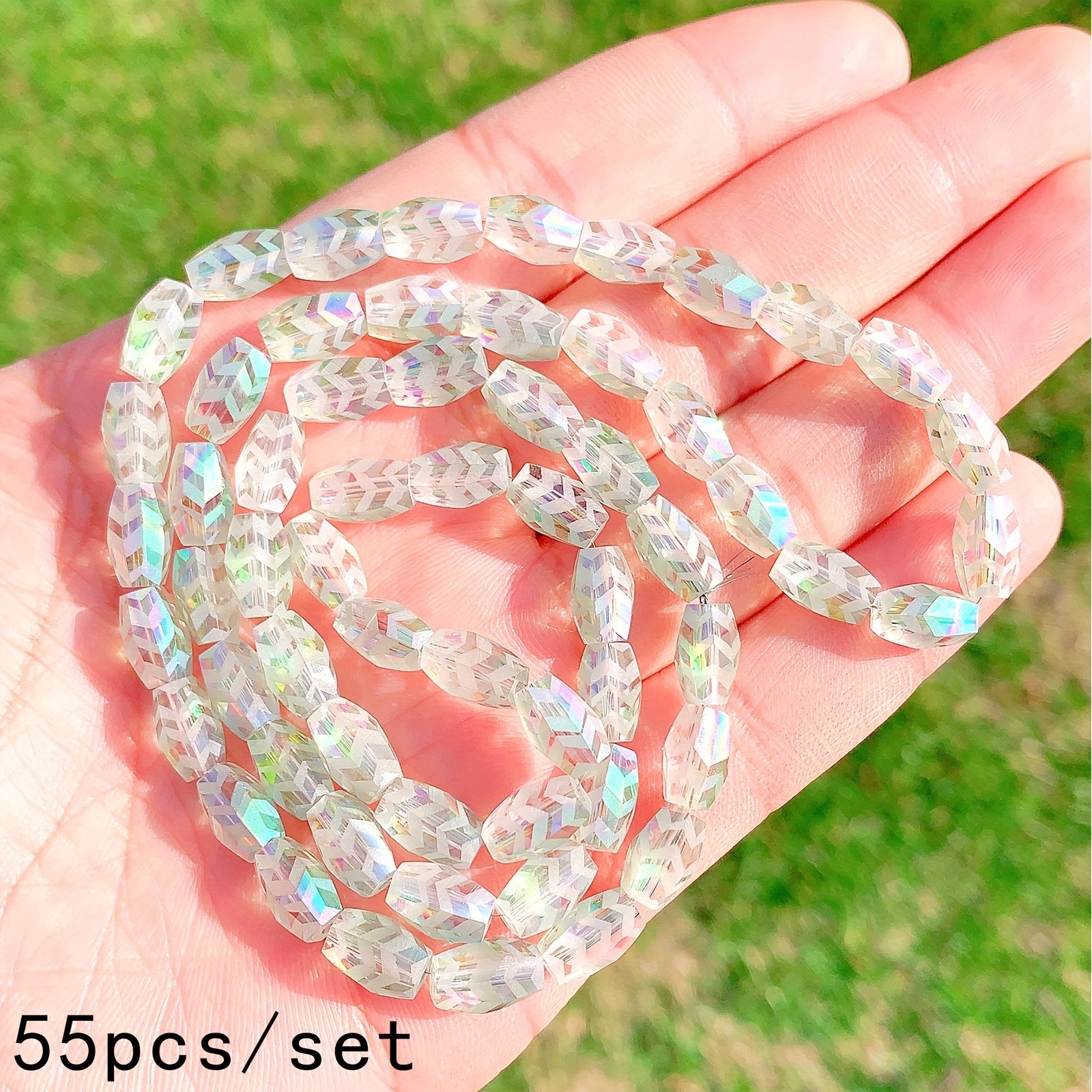 Enhance your DIY bracelet creations with this 55-piece set of green plated AB crystal spacer beads and faceted frosted glass beads. Perfect for adding a touch of elegance to your jewelry accessories.