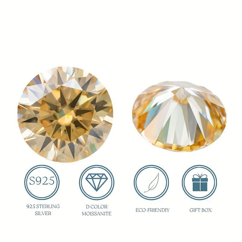 This 5CT Colorful Champagne Round Brilliant Cut Moissanite Stone is perfect for creating a stunning engagement ring, pendant or other jewelry pieces.