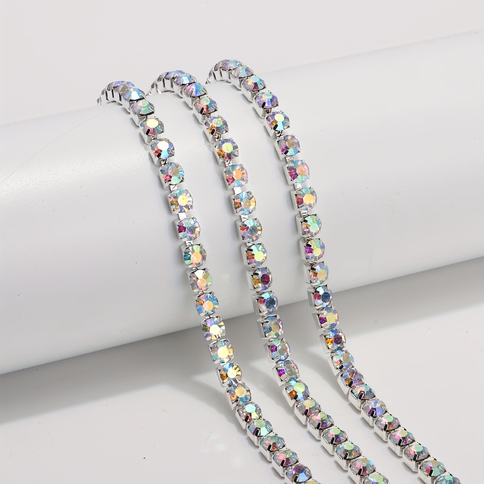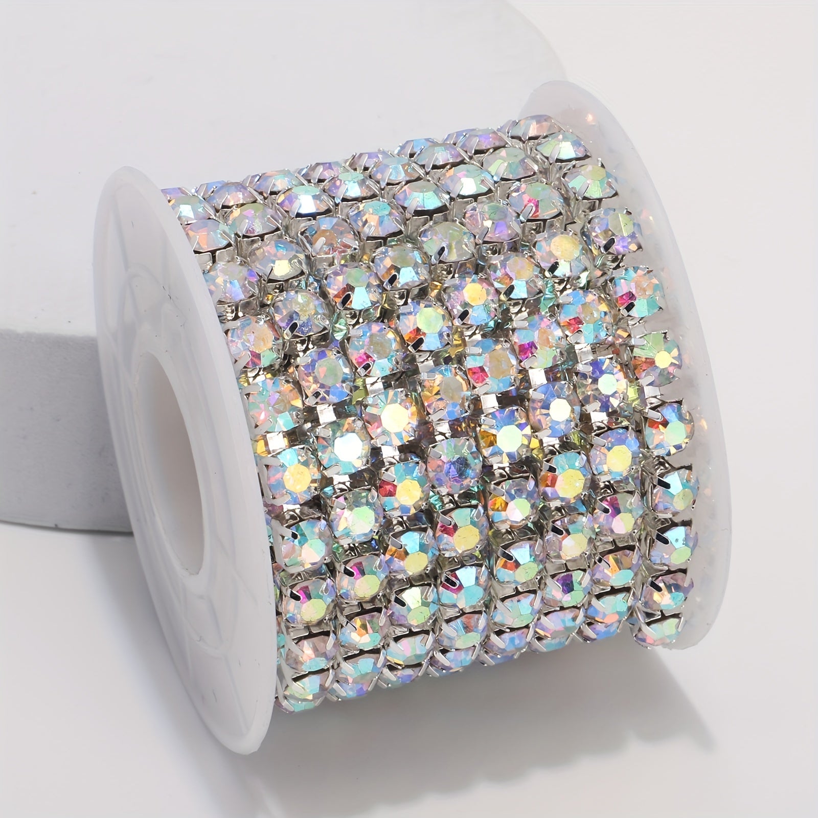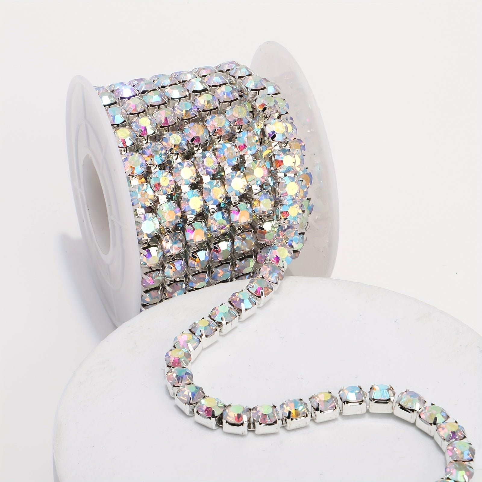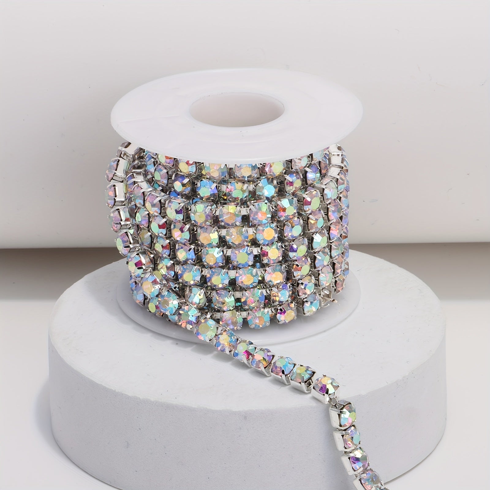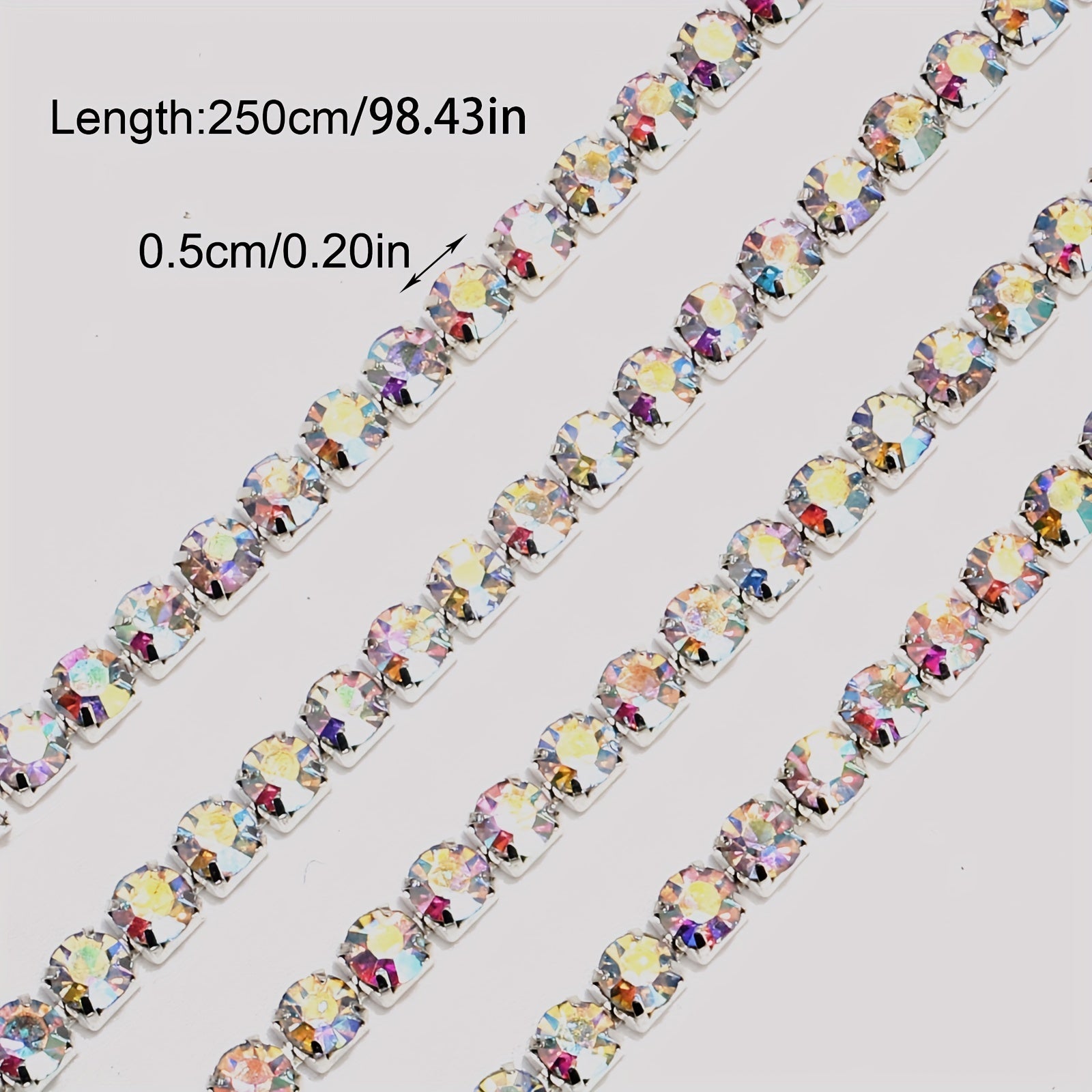 Add a touch of sparkle to your creations with this 5mm Silvery AB rhinestone chain. Perfect for enhancing clothing, shoes, hats, bags, headwear, jewelry, and ear accessories.