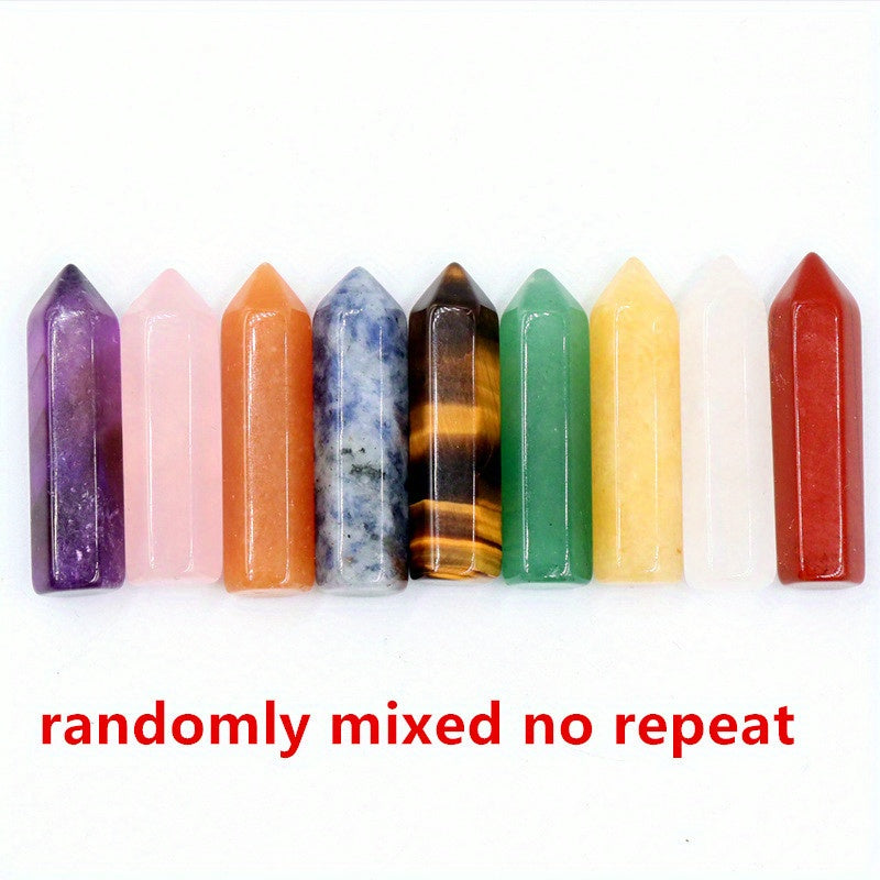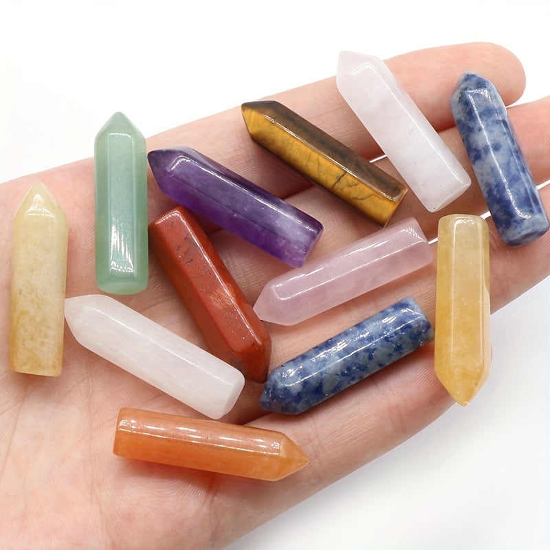Enhance your meditation experience with these 5 mini crystal hexagonal pointed towers. Perfect for decoration or energy healing practices.