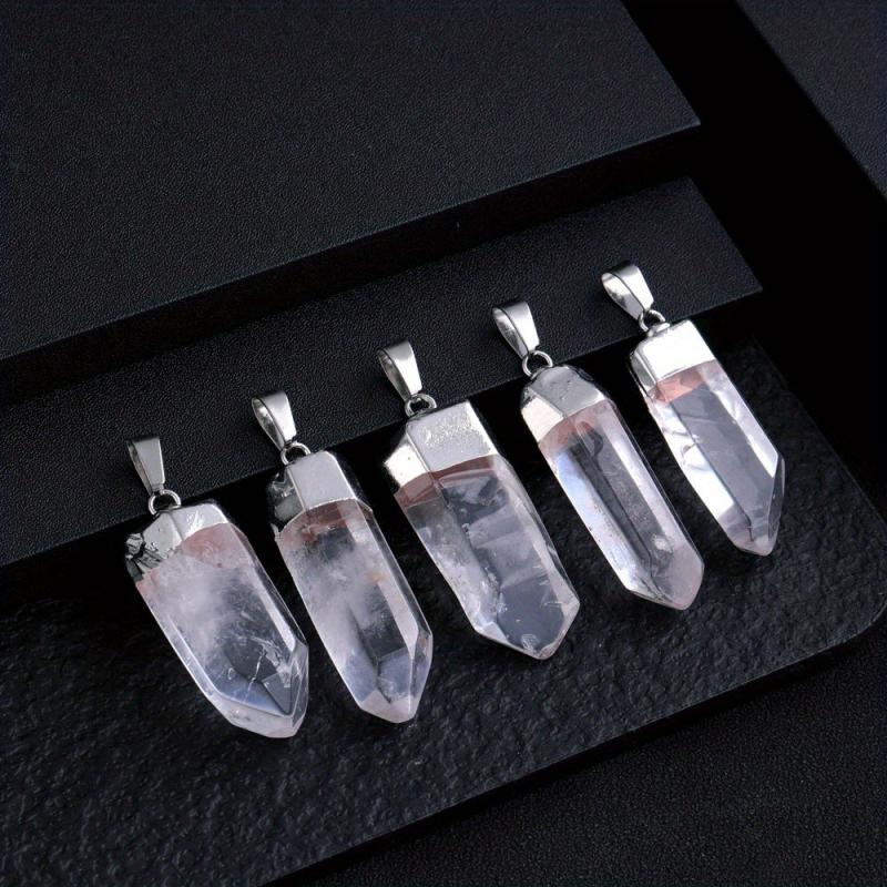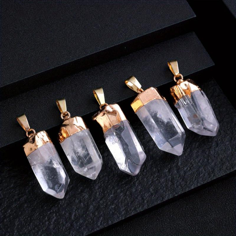 Enhance your jewelry creations with this set of 5 natural crystal pendants. These transparent irregular shaped pendants are perfect for DIY accessories.