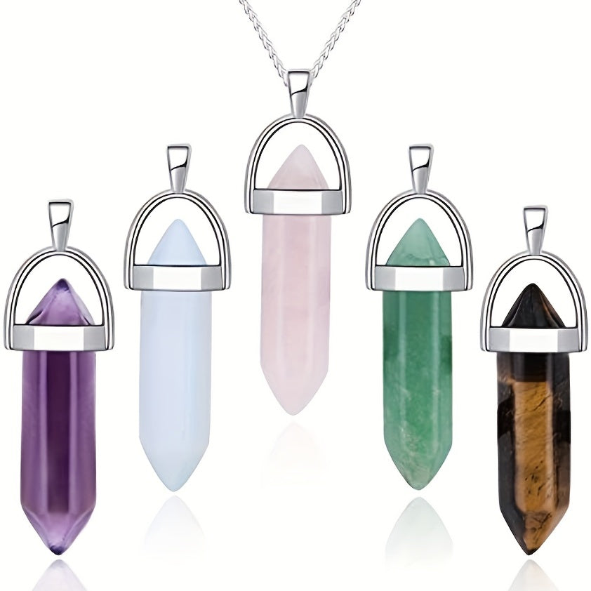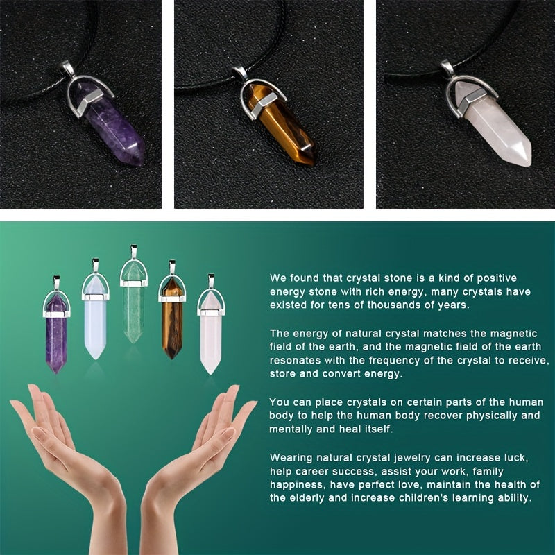 Enhance your jewelry collection with these 5 natural stone crystal hexagonal pendants. Perfect for crafting DIY earrings and necklaces, each gemstone promotes chakra healing and positive energy.