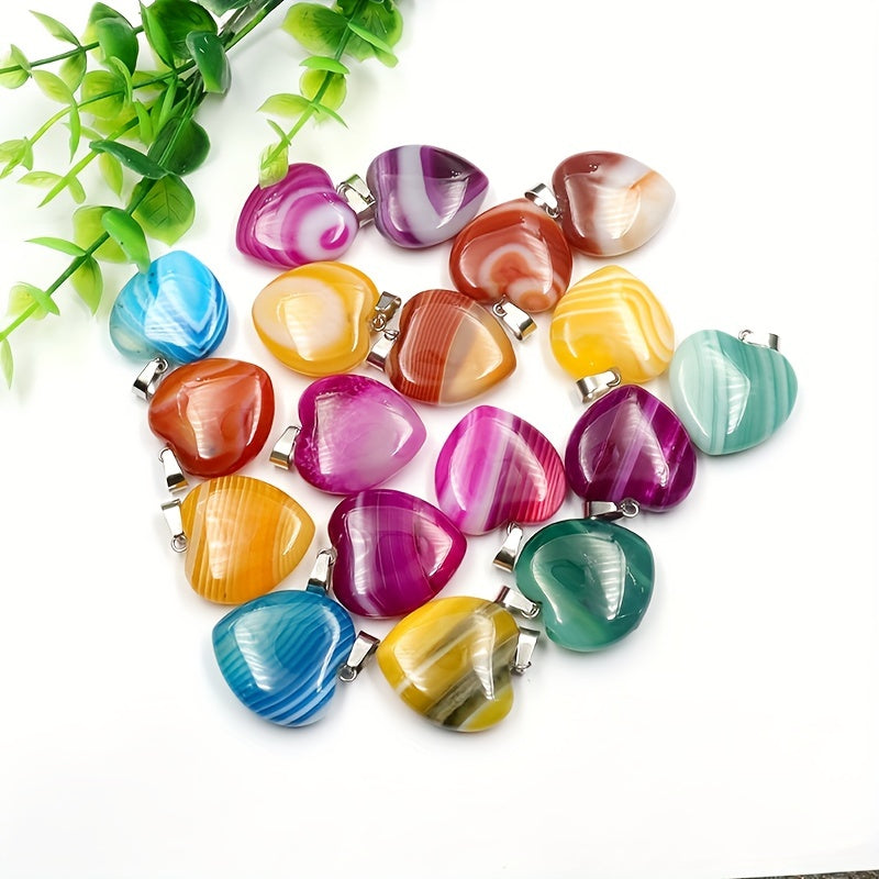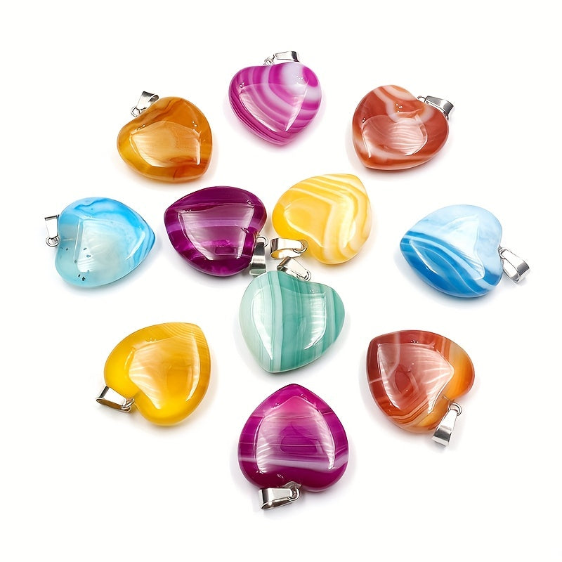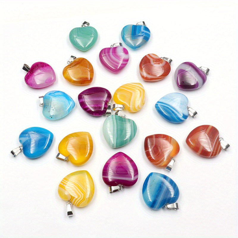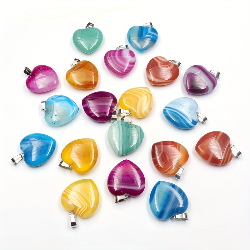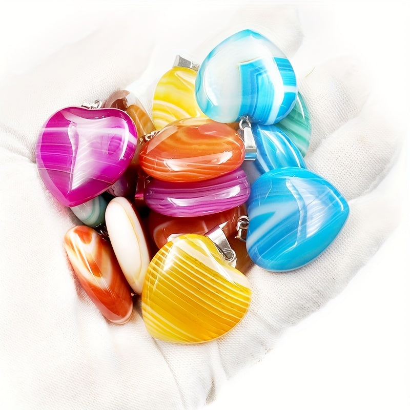 Add a touch of healing and style to your outfit with these heart-shaped necklace pendants. Each pendant comes in a random color, adding a unique touch to your look. Perfect for reiki healing or as a fashionable accessory. Pendant size: 25mm.