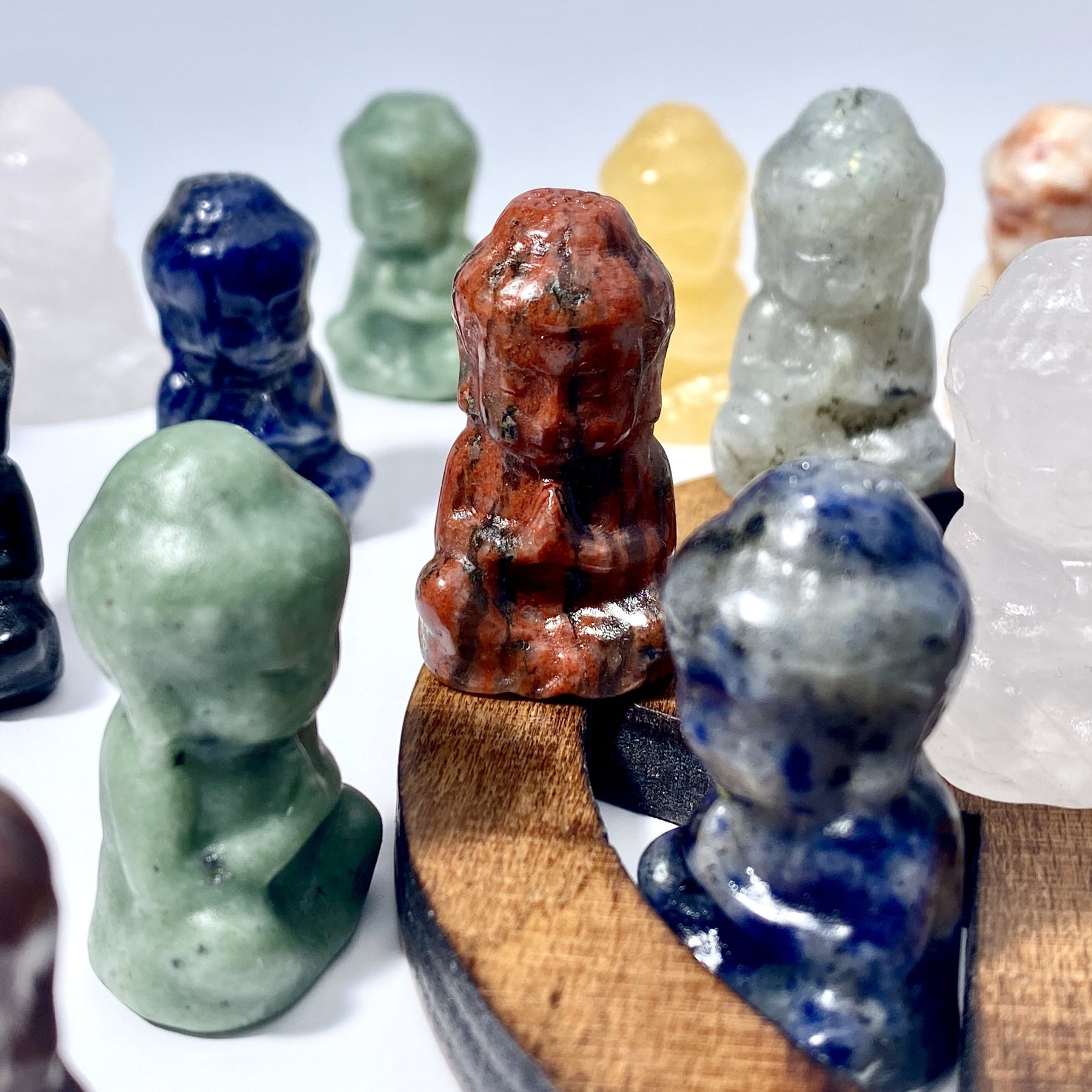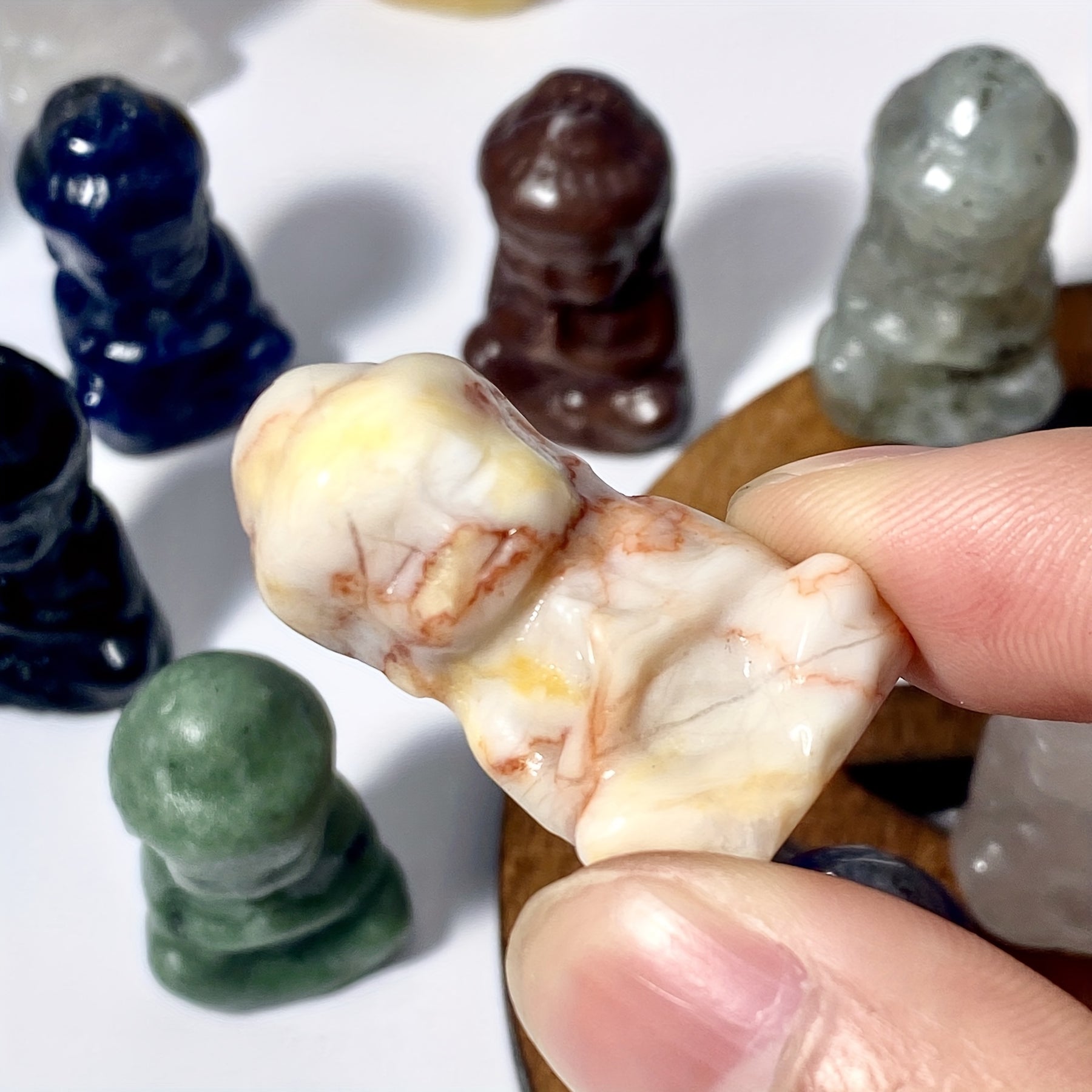 Enhance the spiritual ambiance of your space with these natural gem healing crystal Buddha figures. Ideal for home or car decorations.
