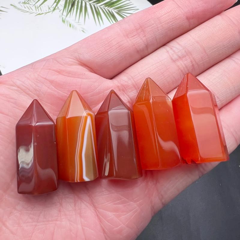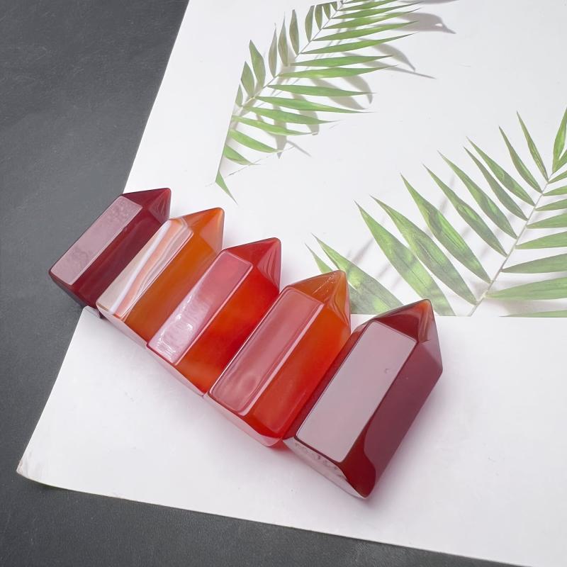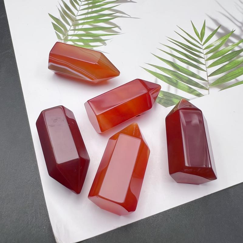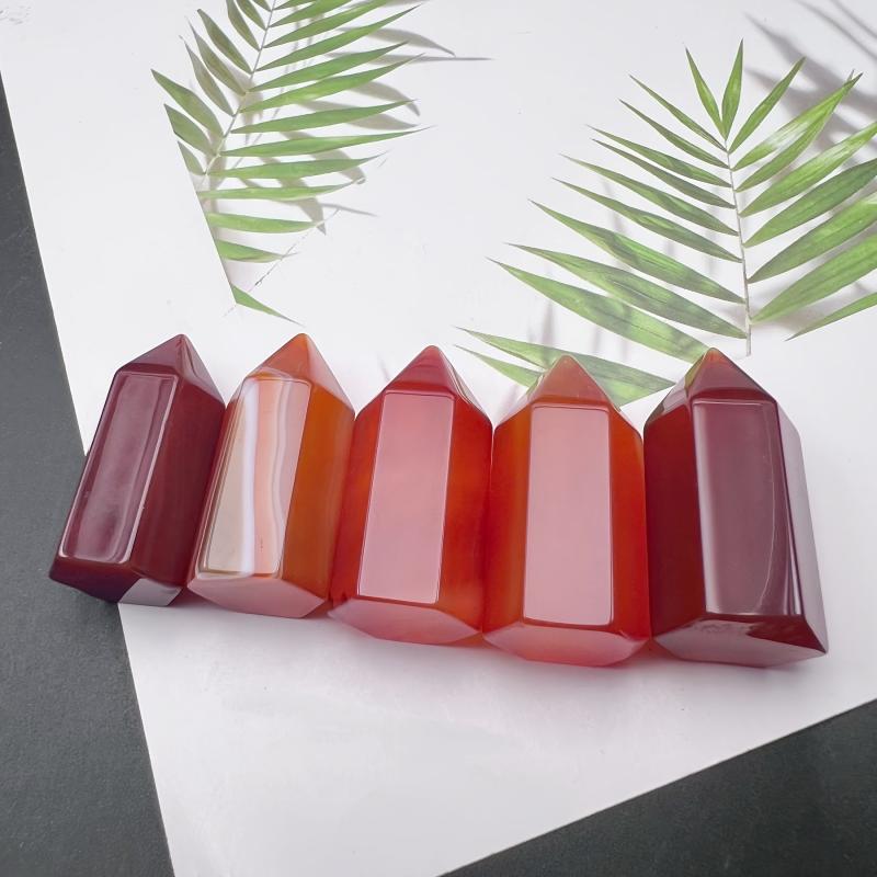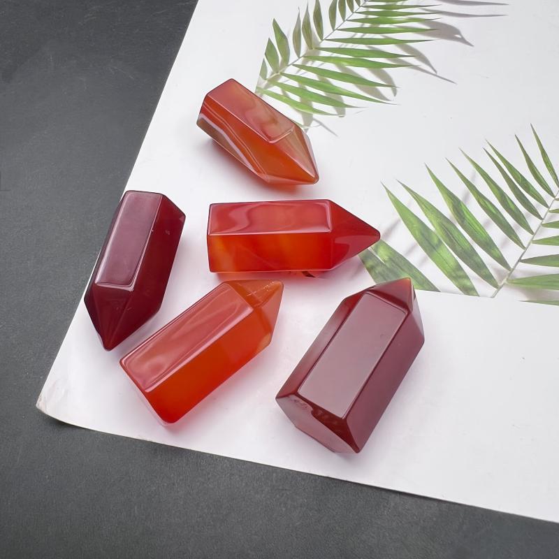 Vibrant red agate single terminated point wands with glossy finish, ideal for spiritual healing and holiday crafts.