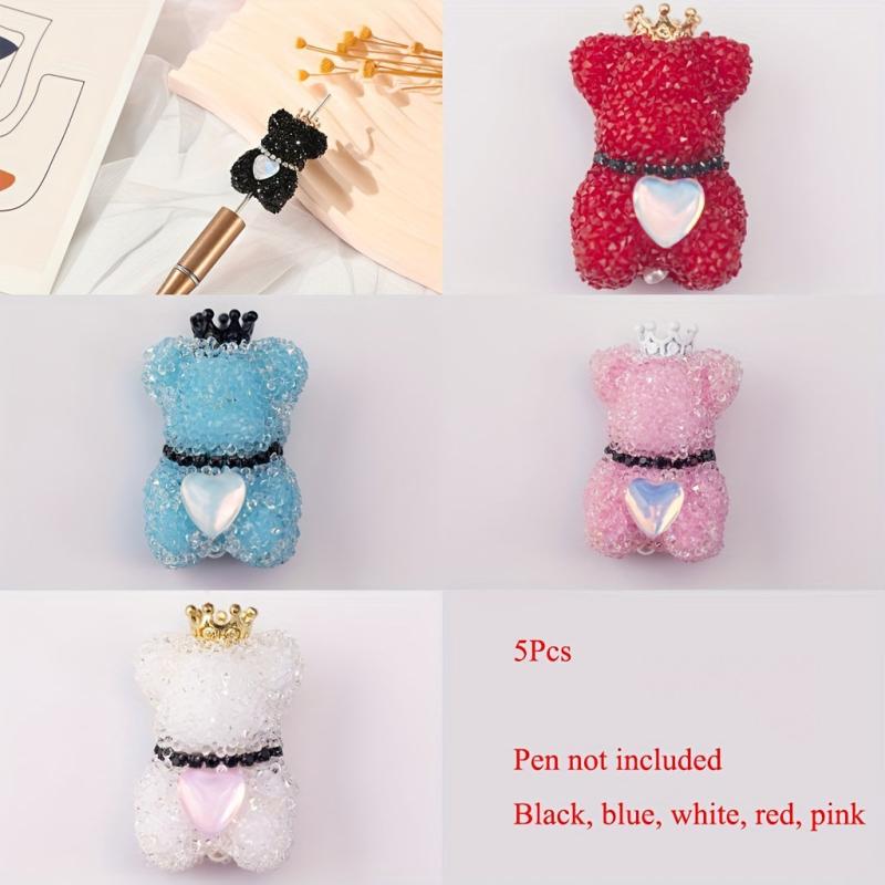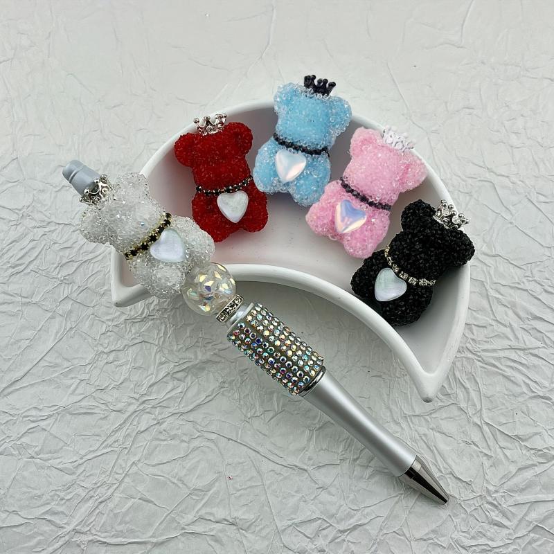 Sparkling rhinestones encrusted bear, crown, and heart focal beads perfect for pens, keychains, and jewelry making. Create stunning pieces with these red and pink beads for your crafts.