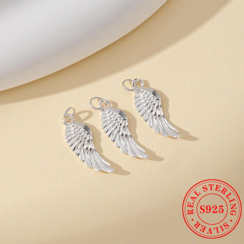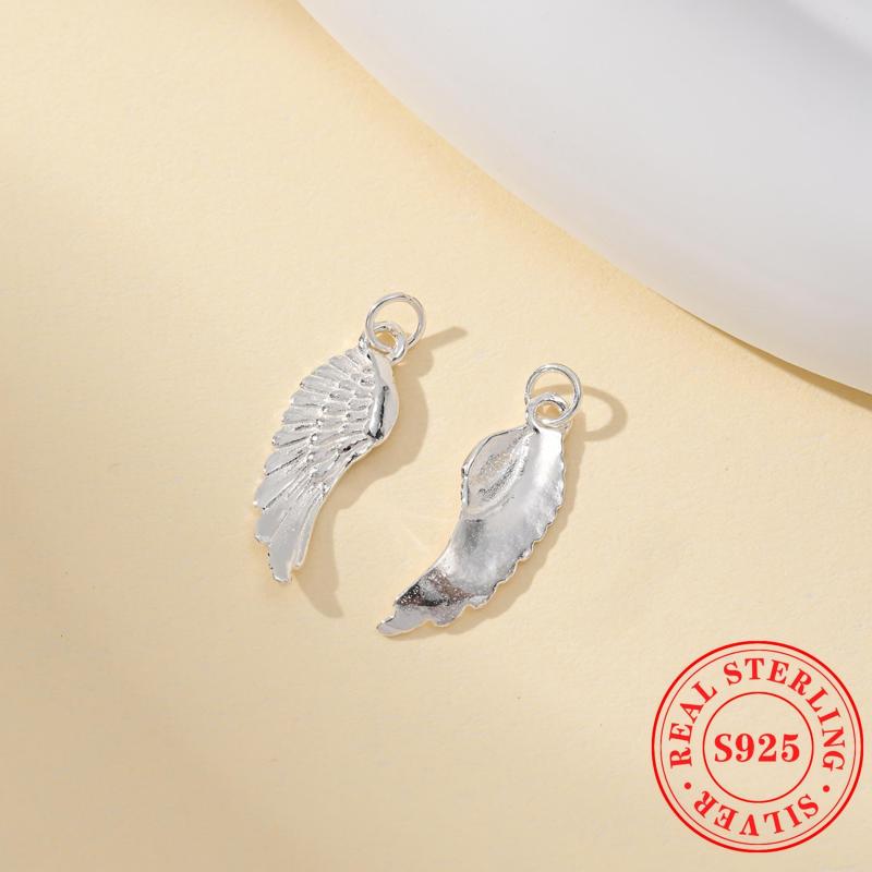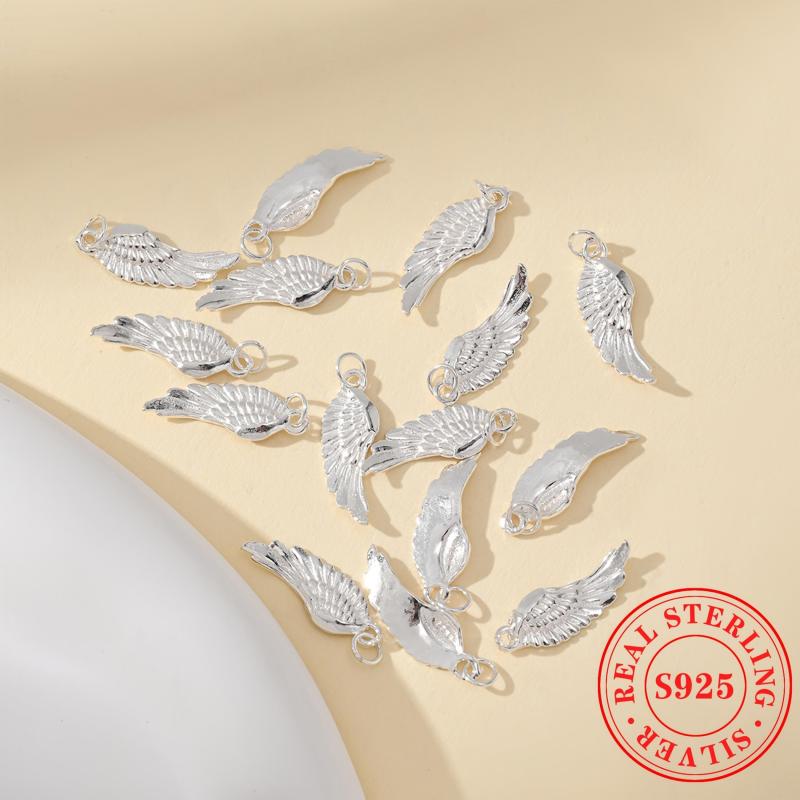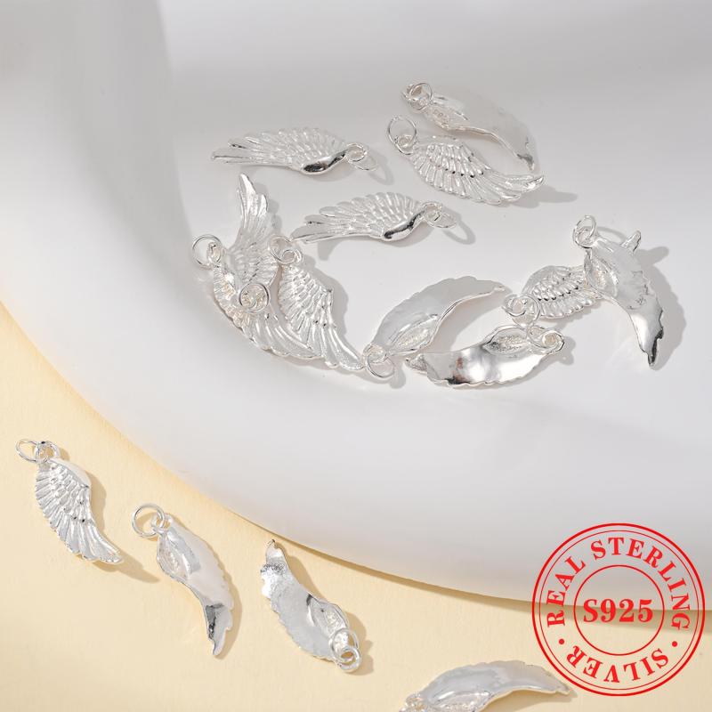 Elegant angel wings pendant set made of genuine S925 sterling silver for creating personalized jewelry pieces. Perfect for crafting unique necklaces and bracelets.