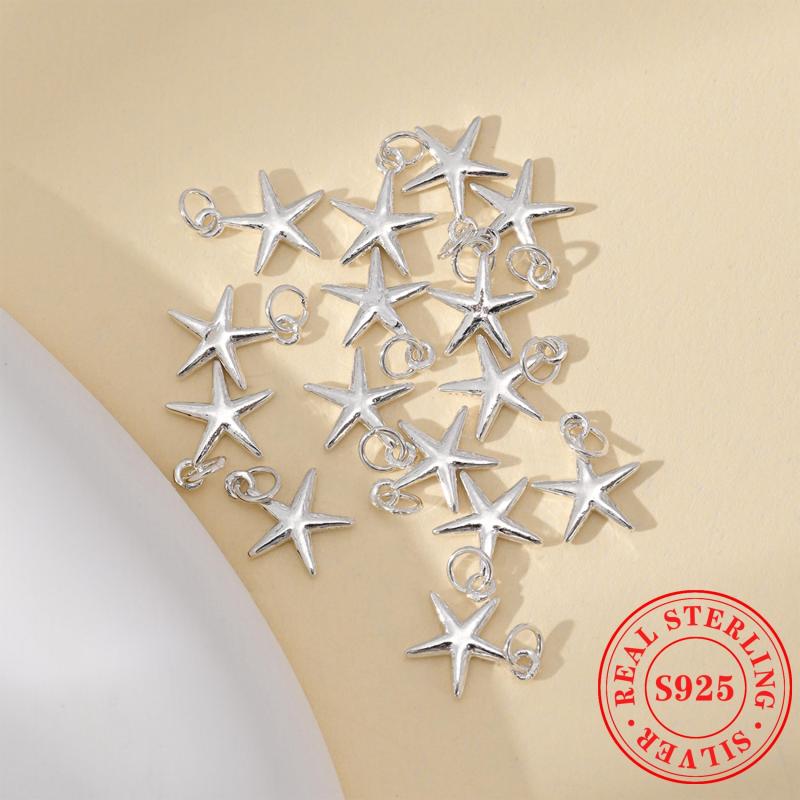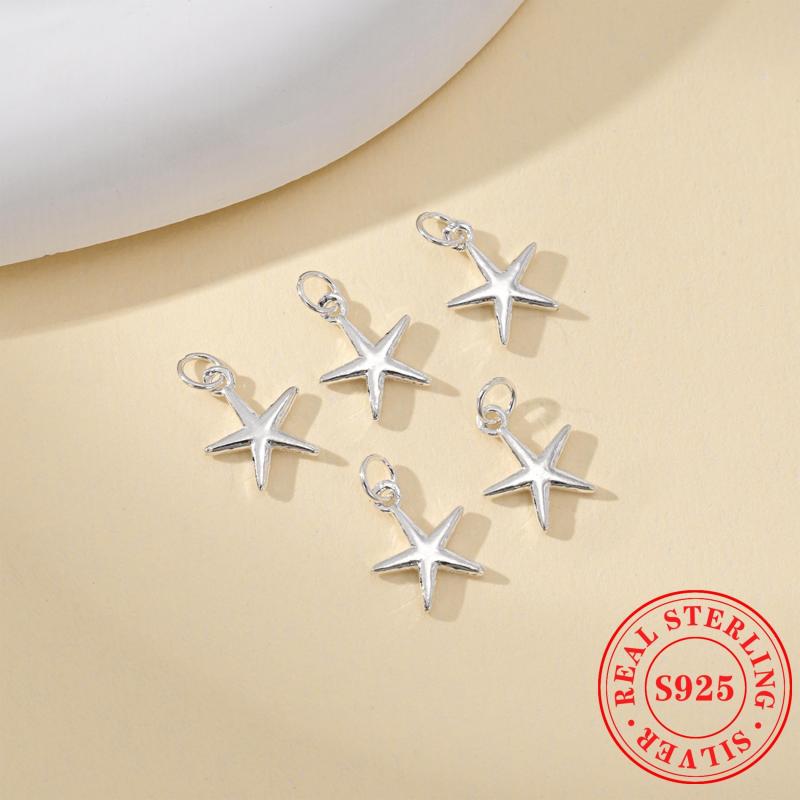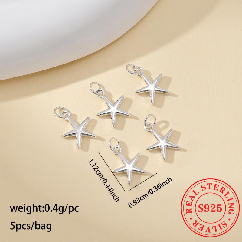 Elevate your DIY jewelry with this 5pcs pack of S925 sterling silver five-pointed star pendants. Perfect for bracelets or necklaces.