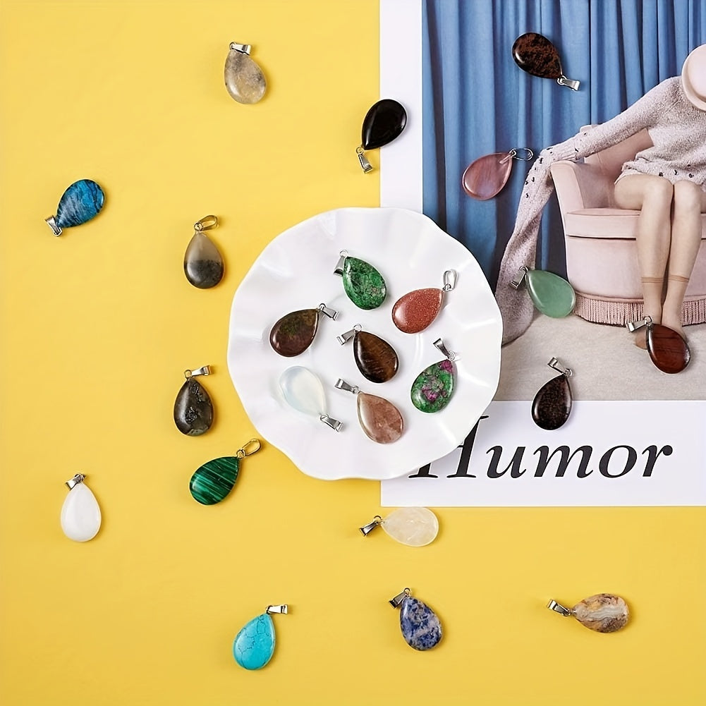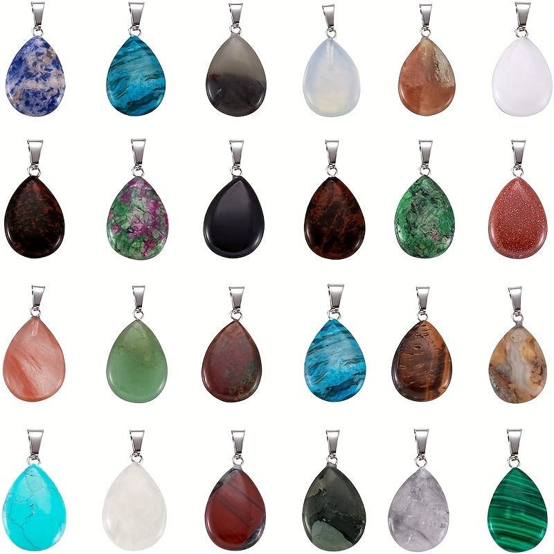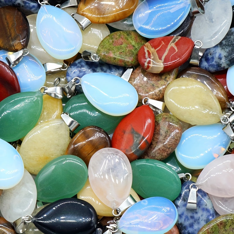 Add a touch of healing crystal energy to your jewelry designs with these teardrop stone pendants. Each pendant is made of quartz chakra gemstone rock, perfect for creating unique necklaces.
