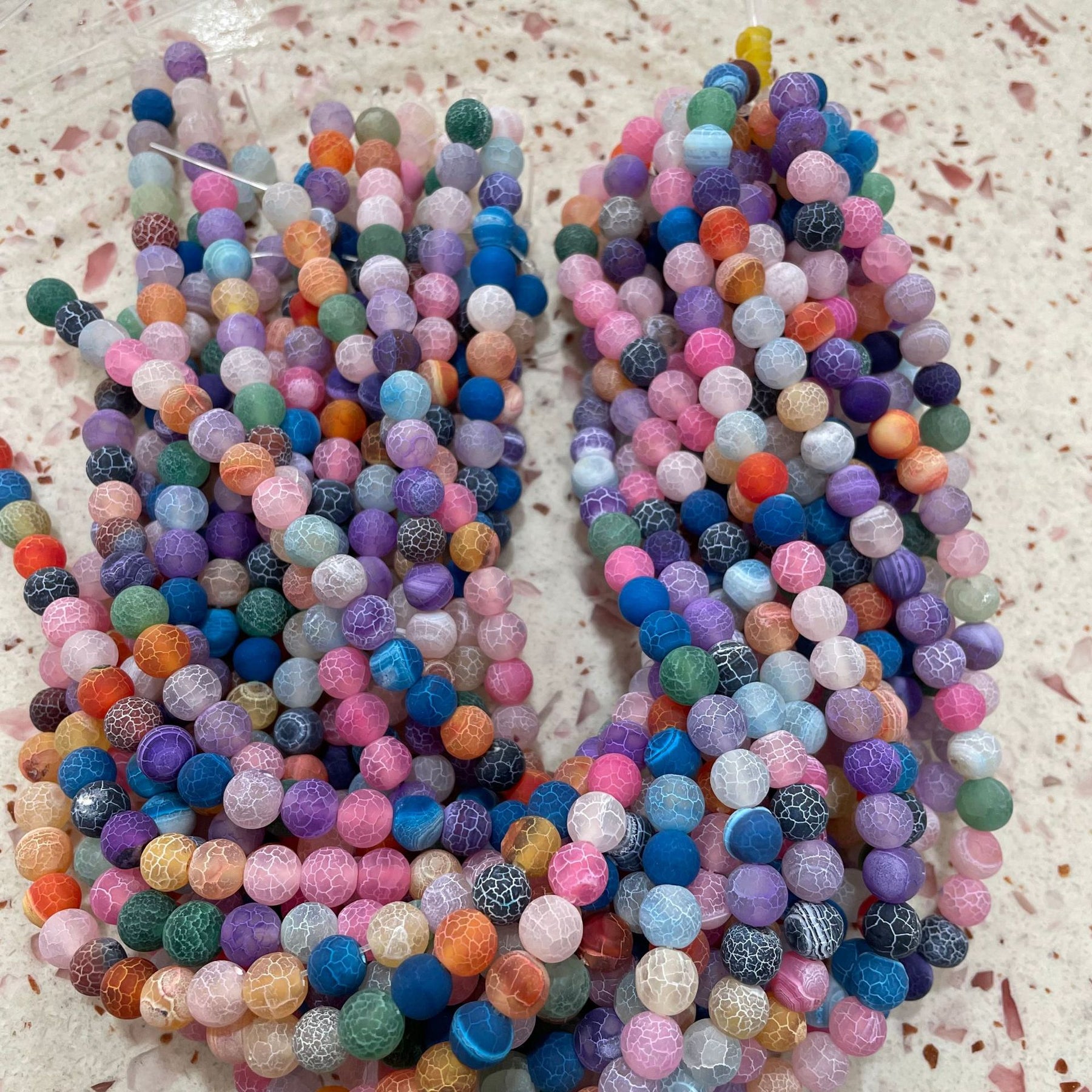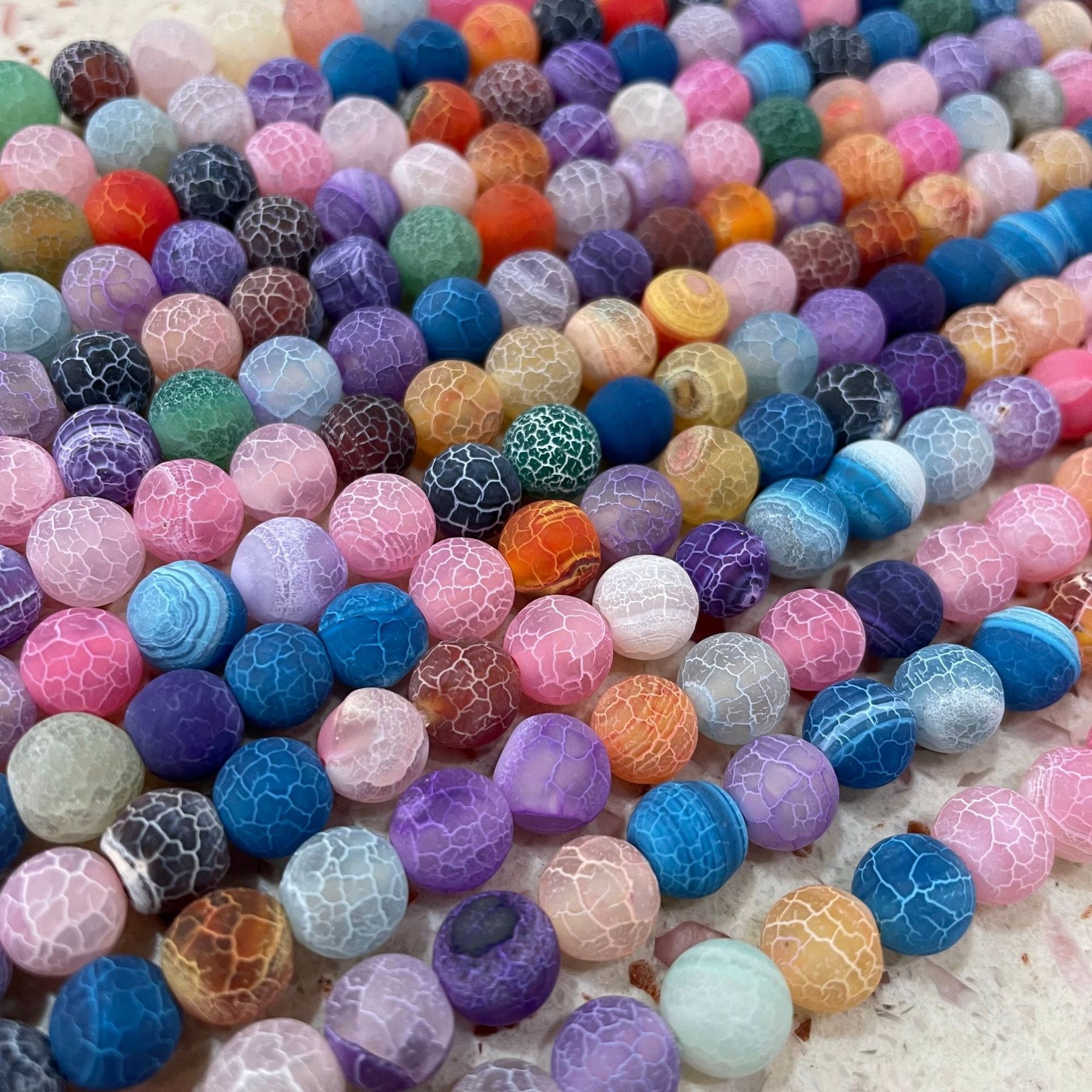 These weathered agate beads are 6-10mm in size and come in a variety of vibrant colors. Use them for your DIY jewelry projects or crafts.