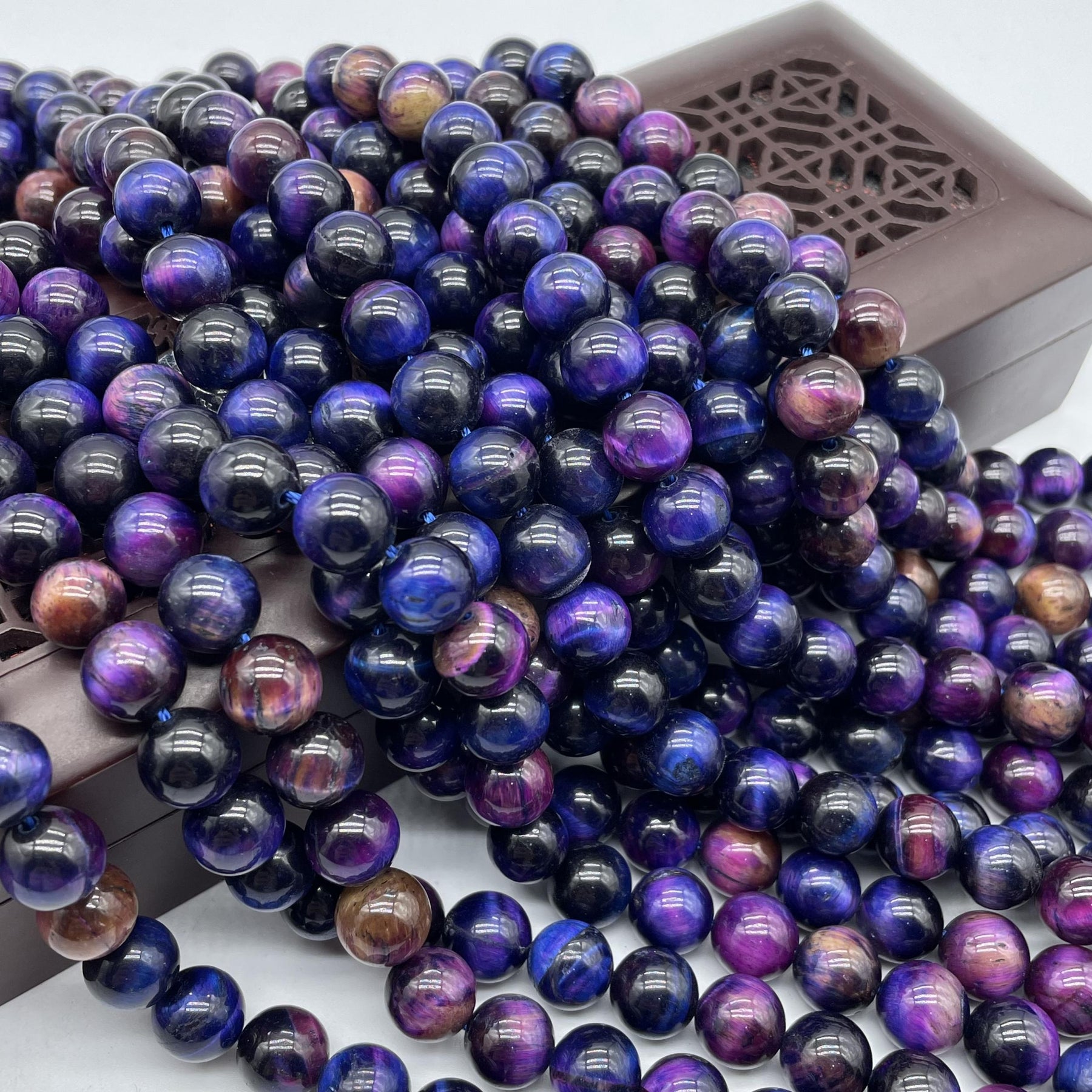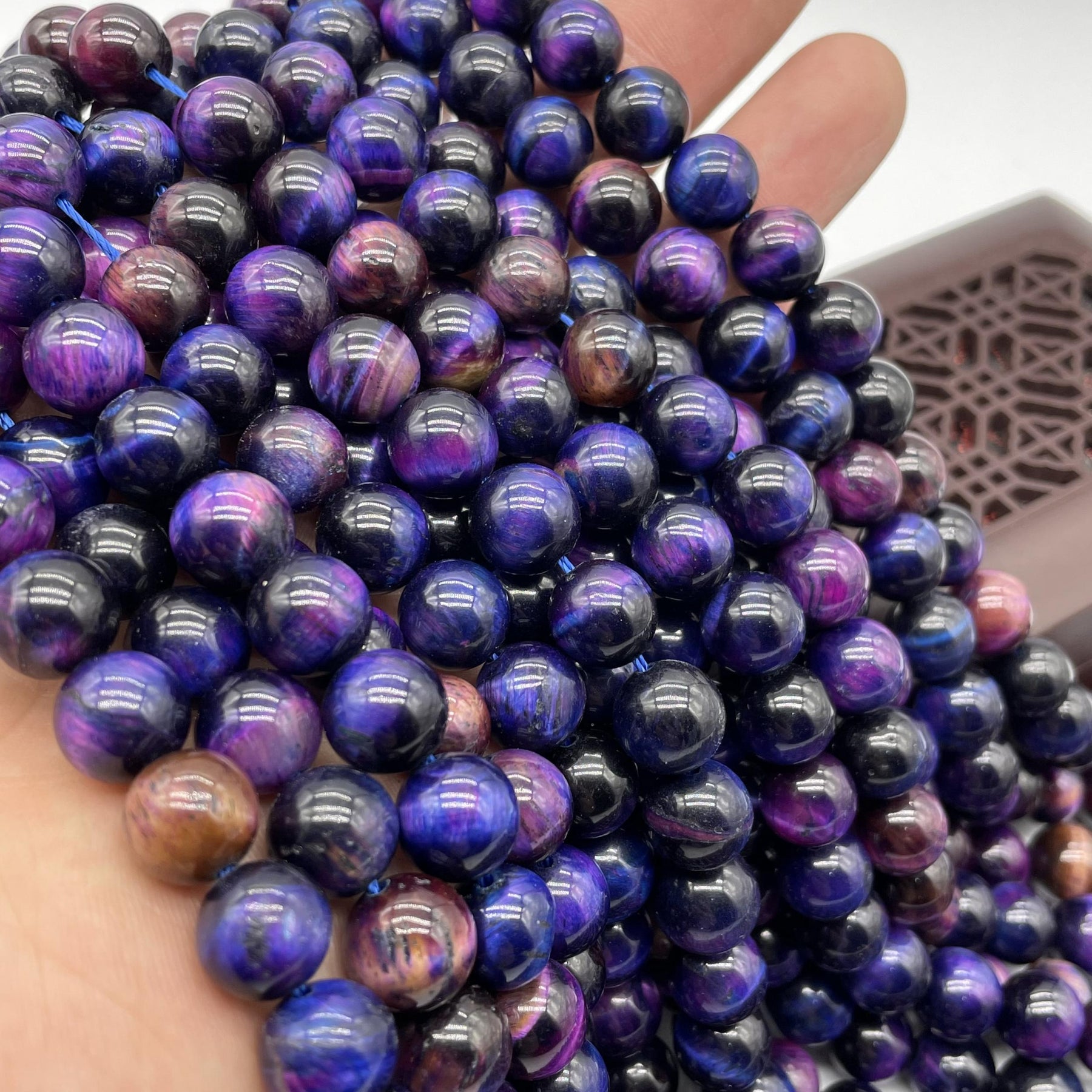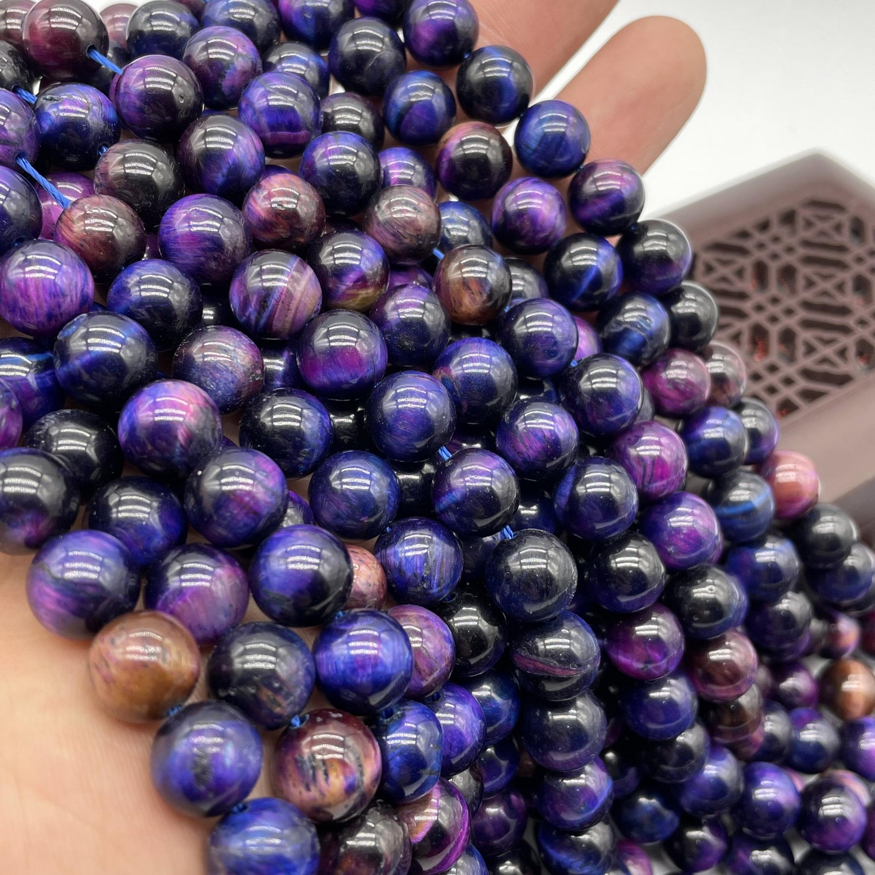 7pcs Starry Tiger Eye Round Beads, perfect for DIY jewelry making. Use them for bracelets, necklaces, and charms.