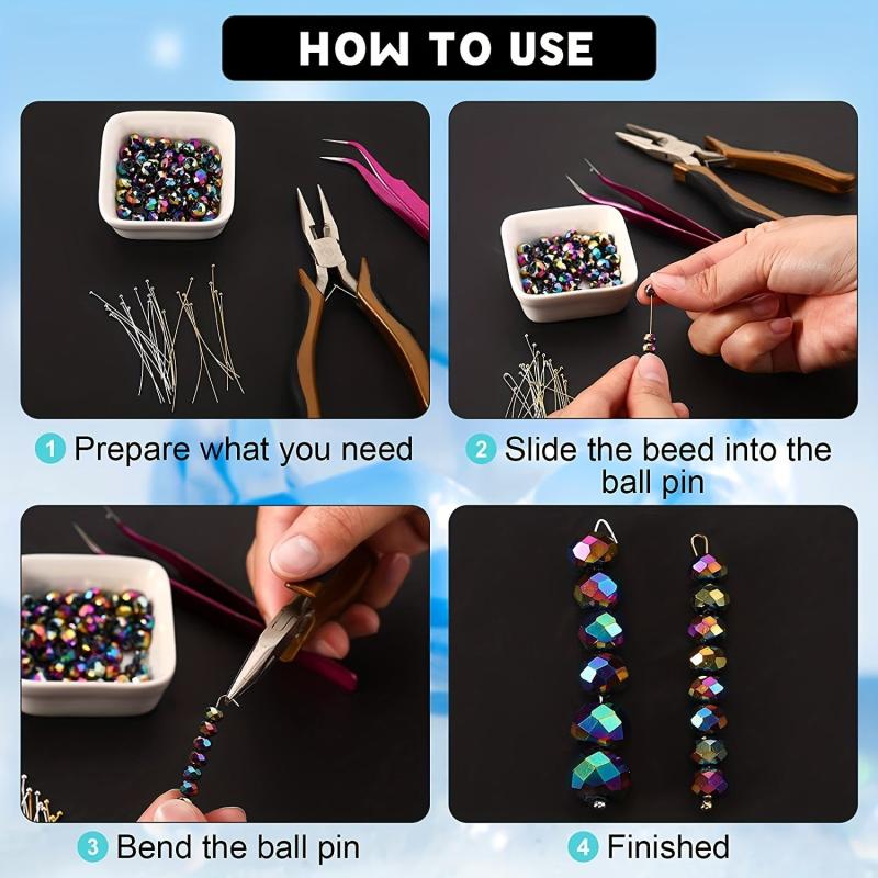 This set includes 600 metal ball head eye pins ideal for making earrings, bracelets, and other jewelry. Perfect jewelry making accessories supplies.