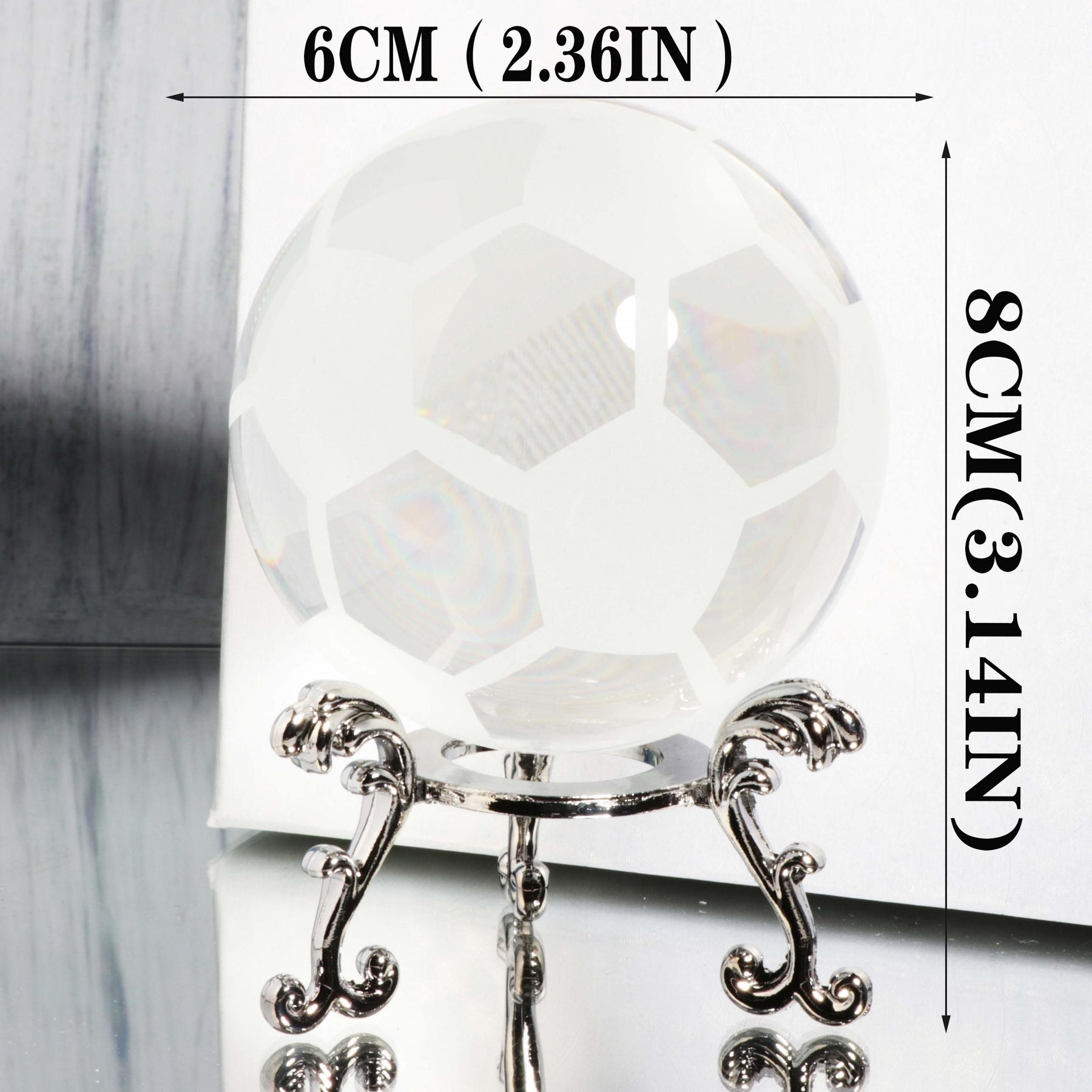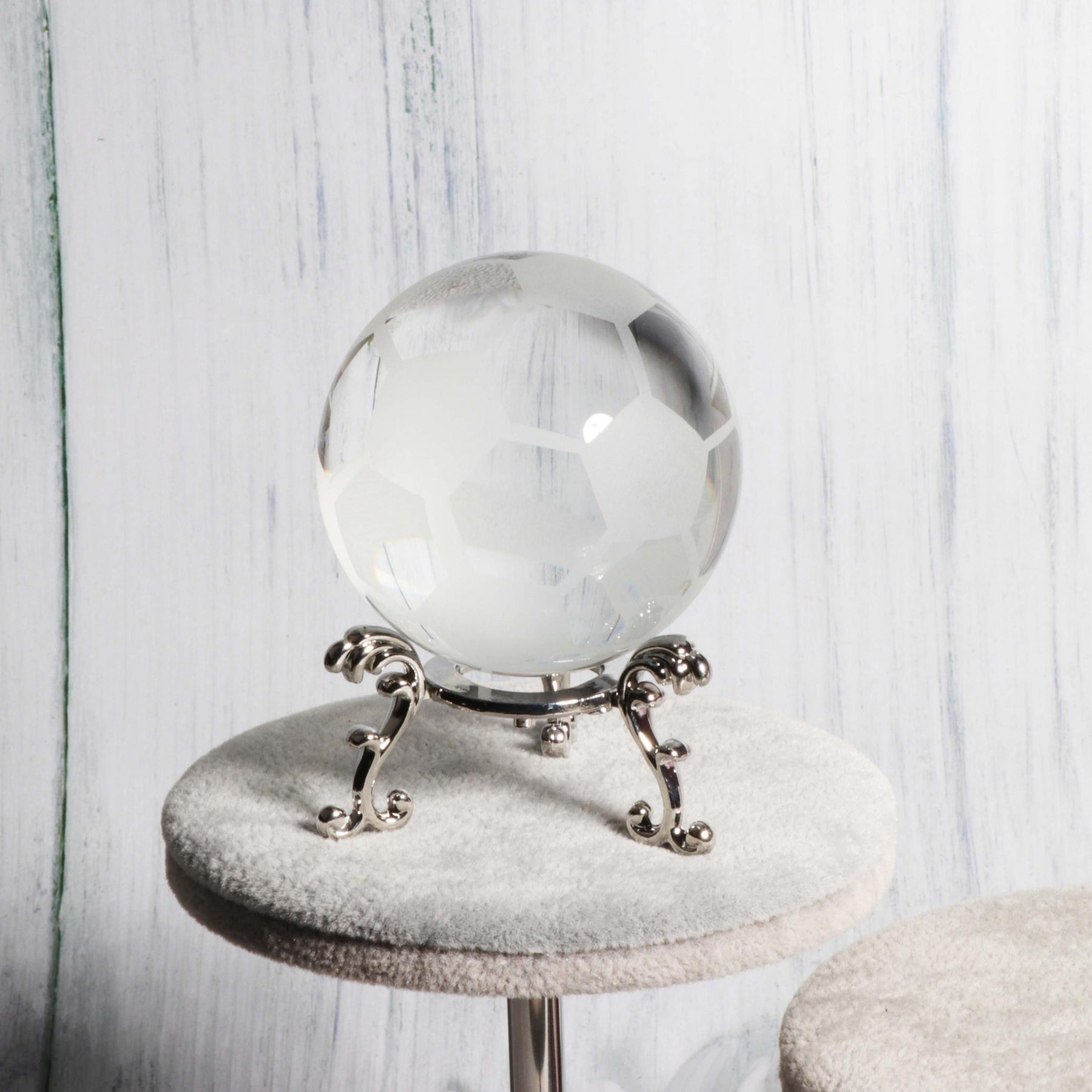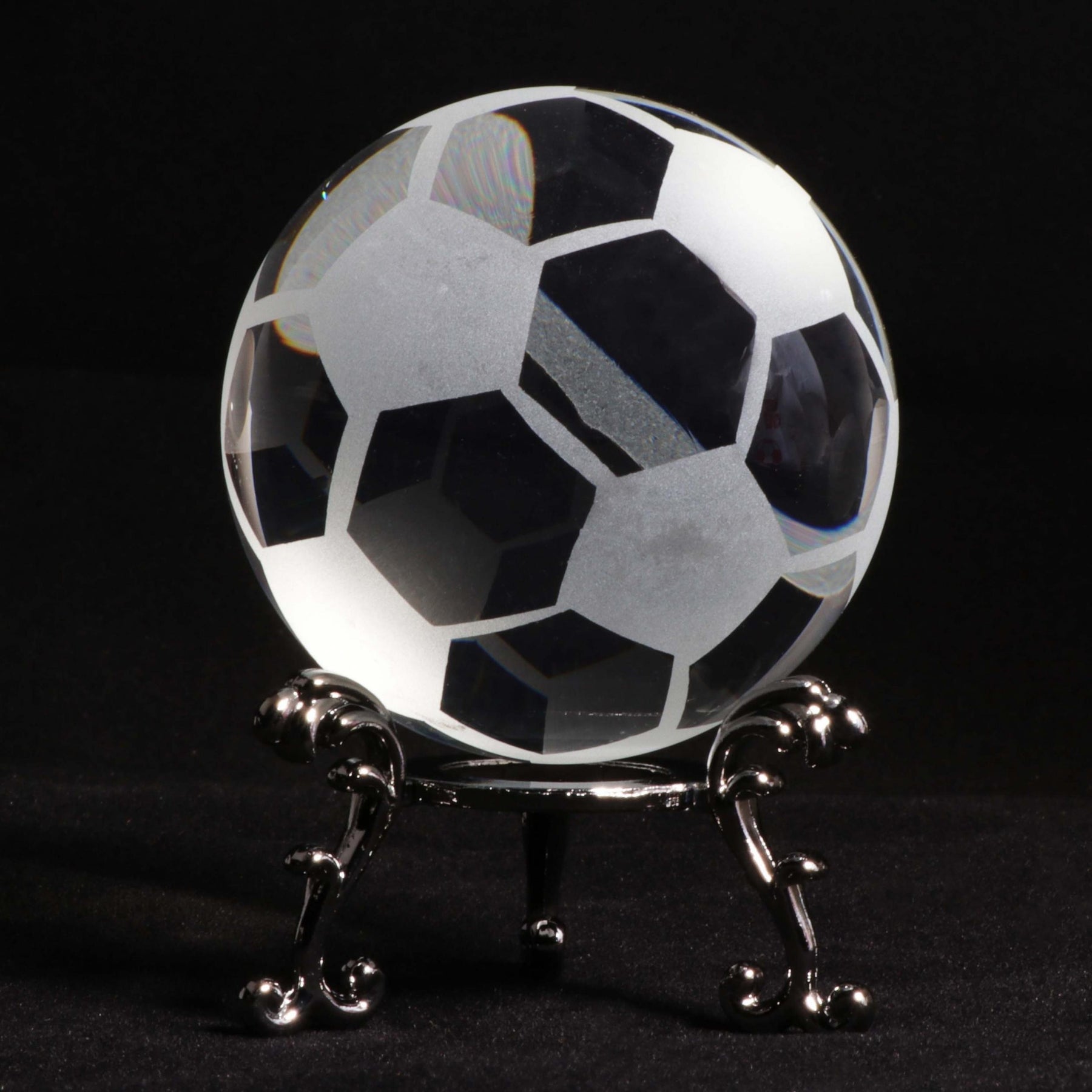 This stunning 60mm crystal soccer ball paperweight is a beautiful decorative piece for any sports fan. It comes with a stand for display.