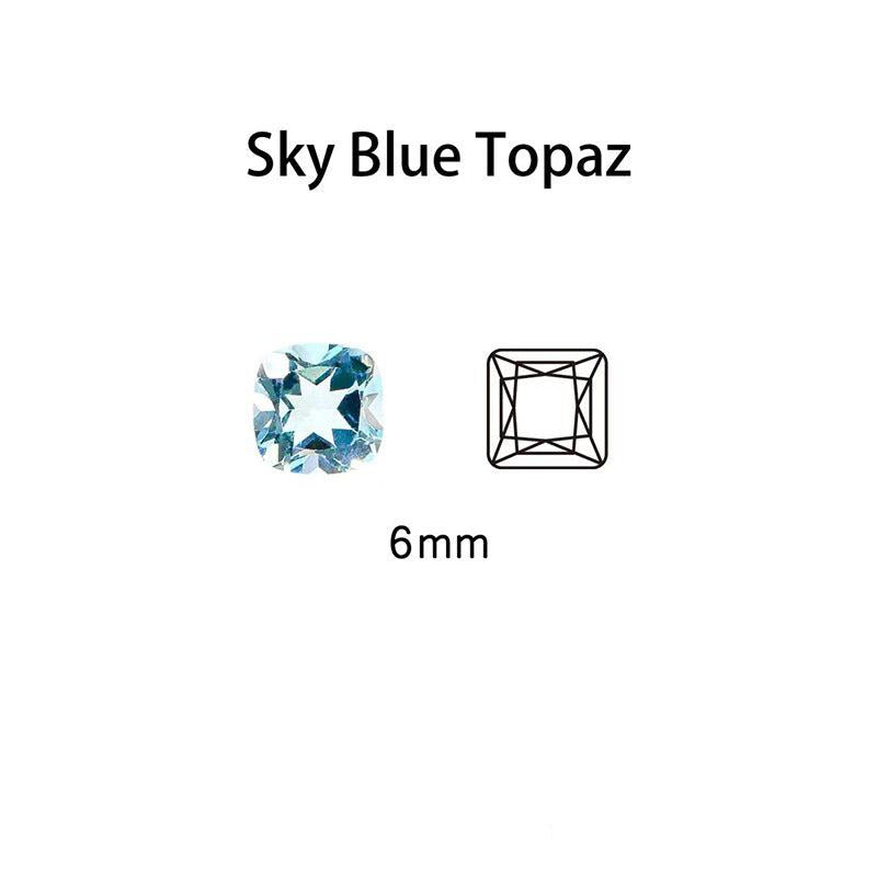 This 6mm square cushion cut Sky Topaz stone is ideal for DIY jewelry projects like rings, pendants, and earrings. It's a natural unmounted synthetic stone that makes a perfect gift for birthdays and holidays.