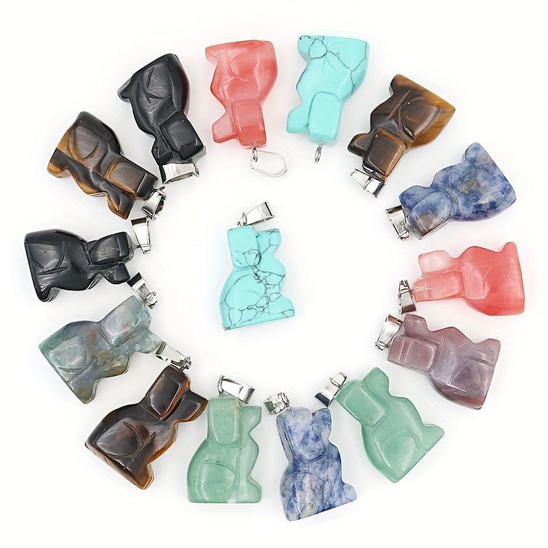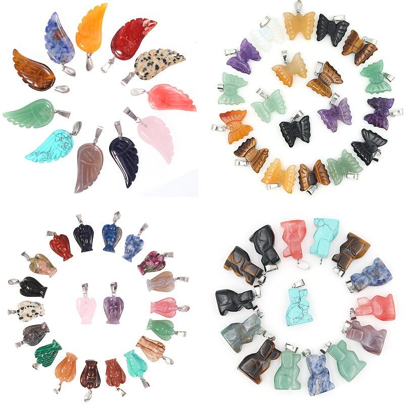 These unique natural stone charms feature intricate designs and come in random colors. Perfect for crafting your own jewelry pieces.
