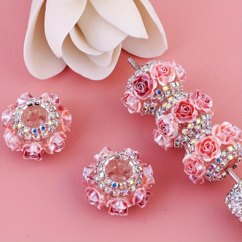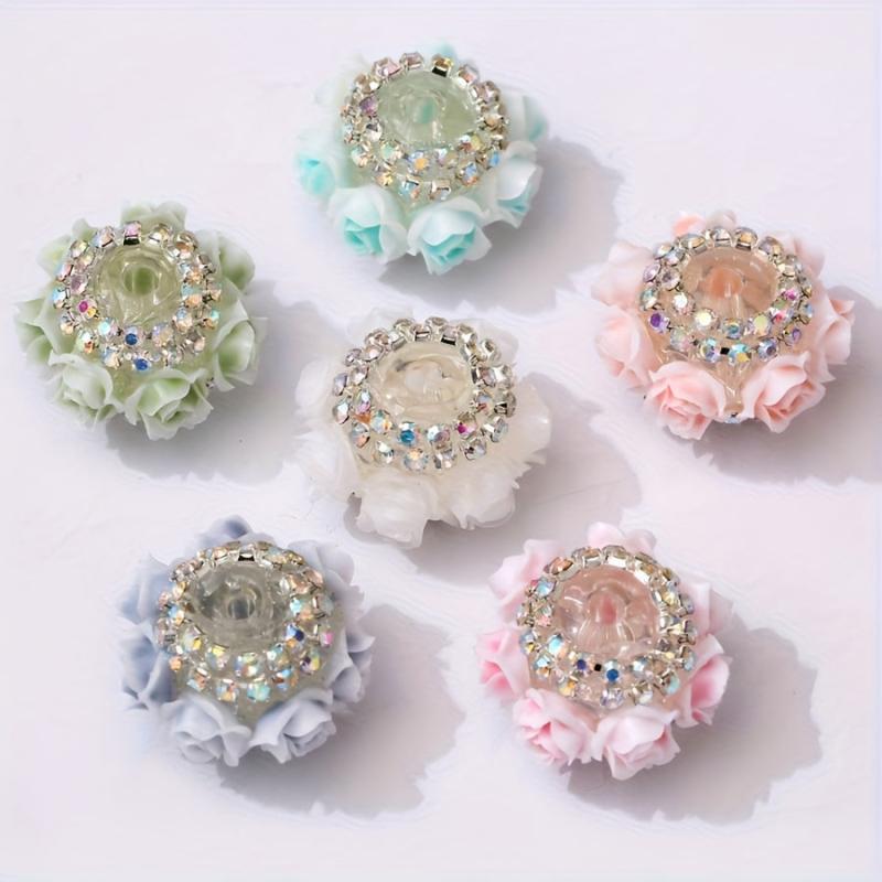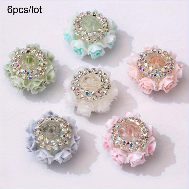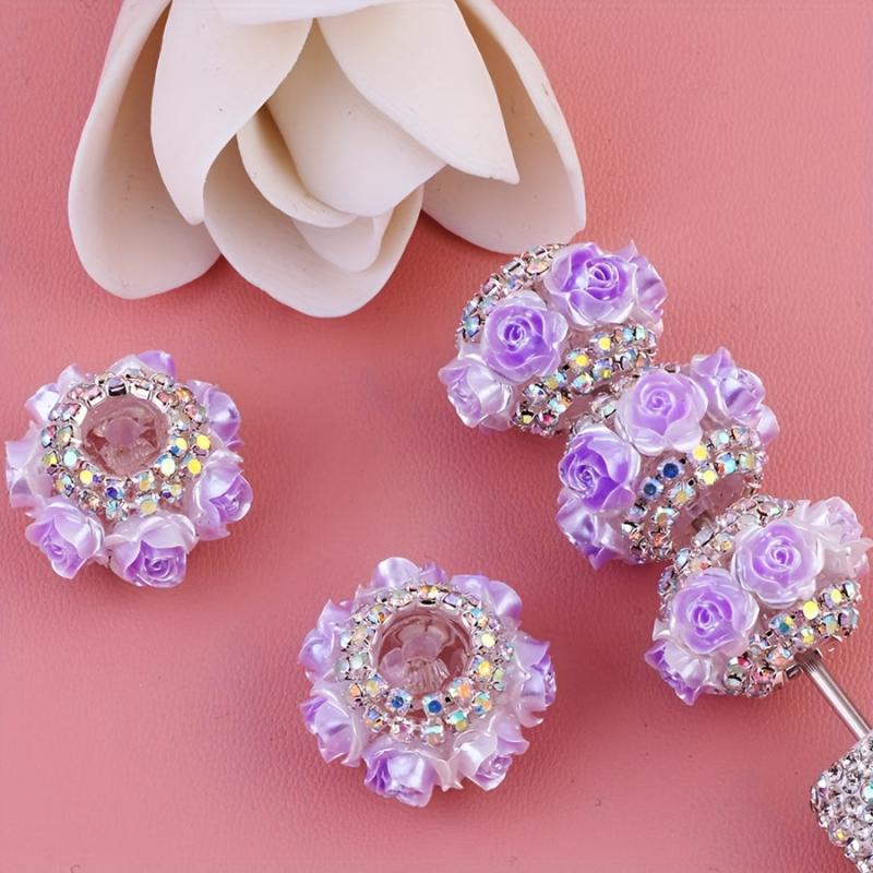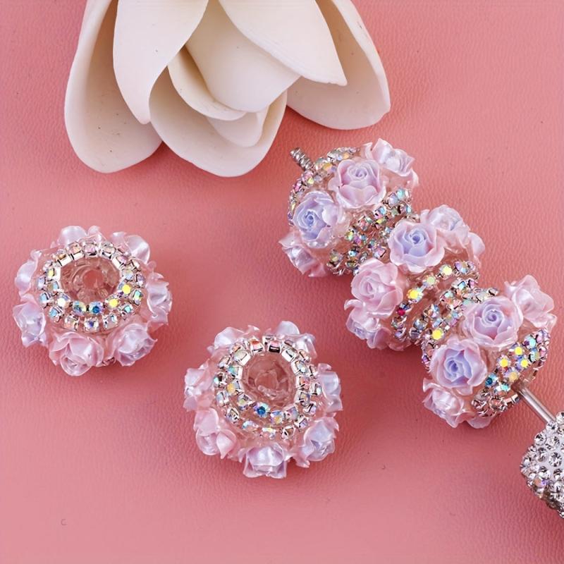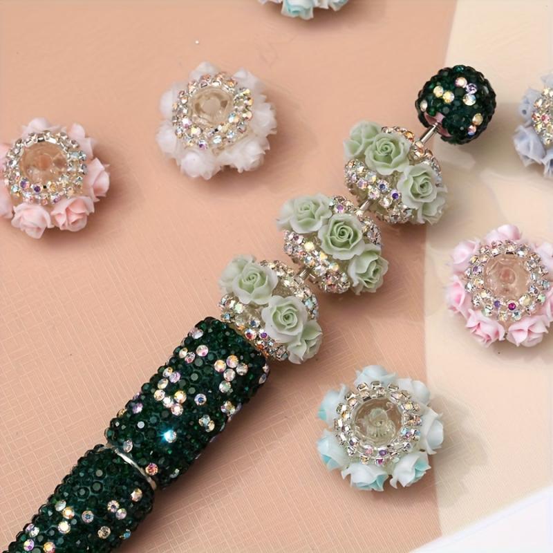These 6 colorful rose beads come in multiple colors and are adorned with rhinestone spacer beads and straight hole beads. They are perfect for creating bead pens, mobile phone pendants, keychains, and more.
